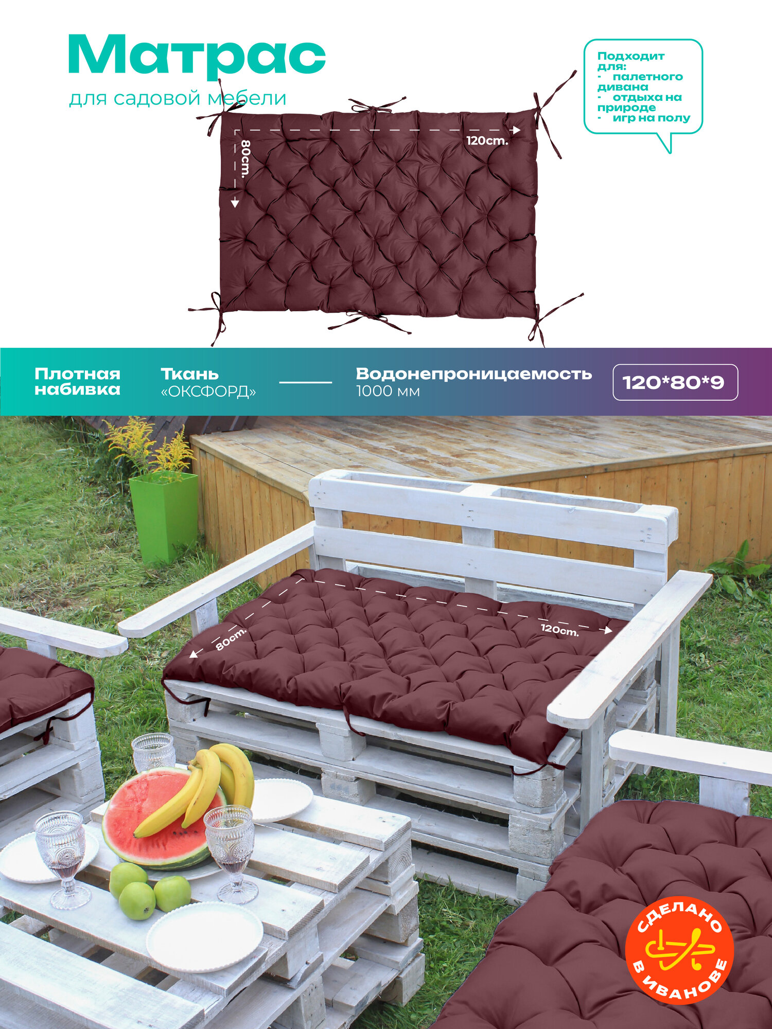 Подушка матрас для мебели и паллет, матрас на подоконник Bio-Line 80х120 см с завязками для дома и дачи с водоотталкивающей пропиткой,шоколад