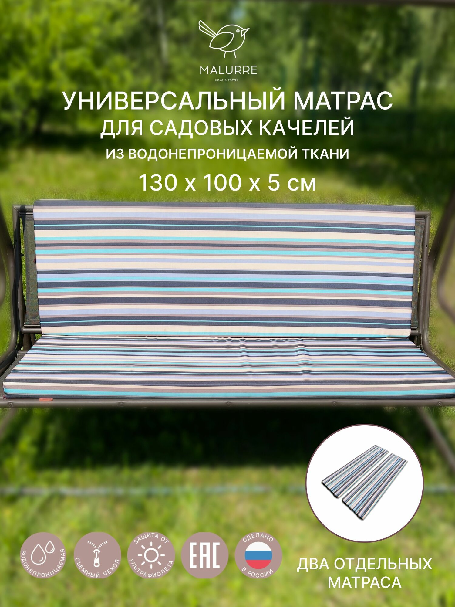 Универсальный матрас для садовых качелей Malurre, 130*100*5 см зеленая полоса