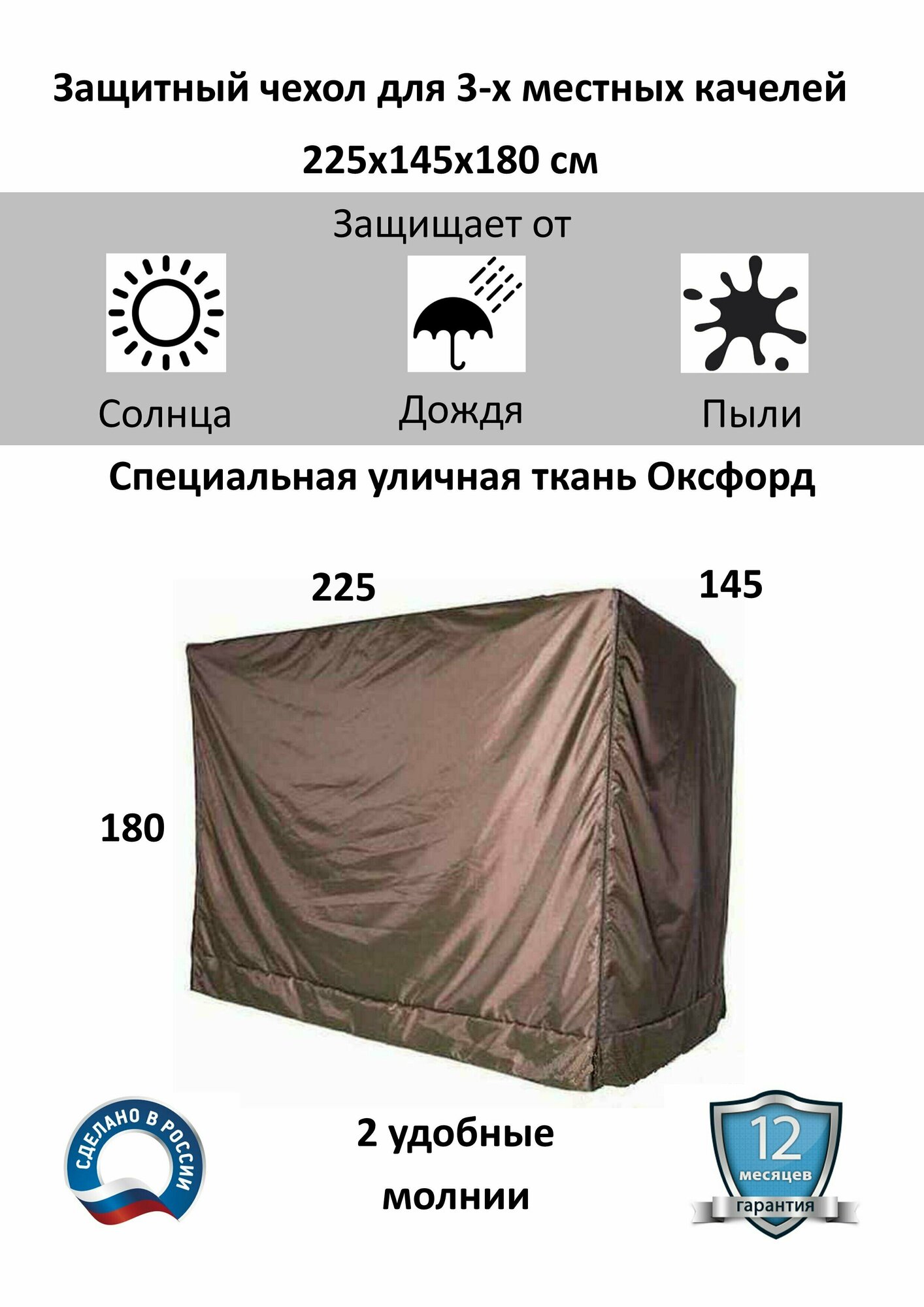 Чехол 225х145х180 см для 3-х местных садовых качелей, тент укрытие, шоколад интересное: