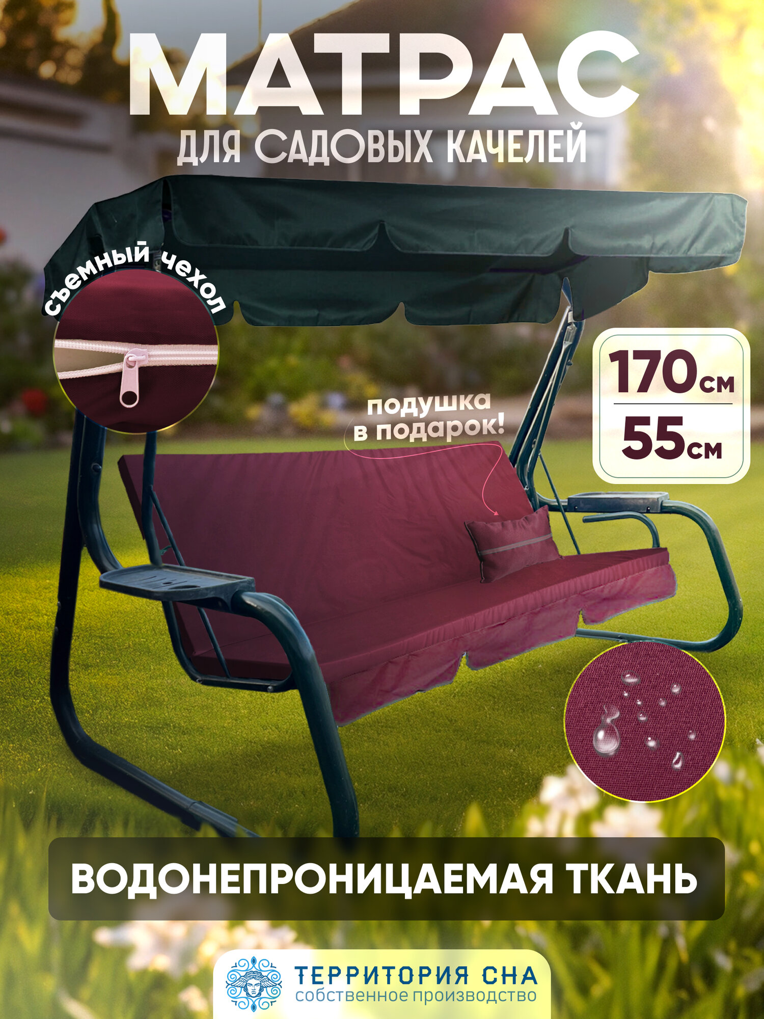 Ниже Вы можете прочитать отзывы на Матрас для садовых качелей 170х55 см. Цвет: Бордовый. Водонепроницаемый съемный чехол., ознакомится с подробными характеристиками, посмотреть интересные обзоры и фотографии на Матрас для садовых качелей 170х55 см. Цвет: Бордовый. Водонепроницаемый съемный чехол..