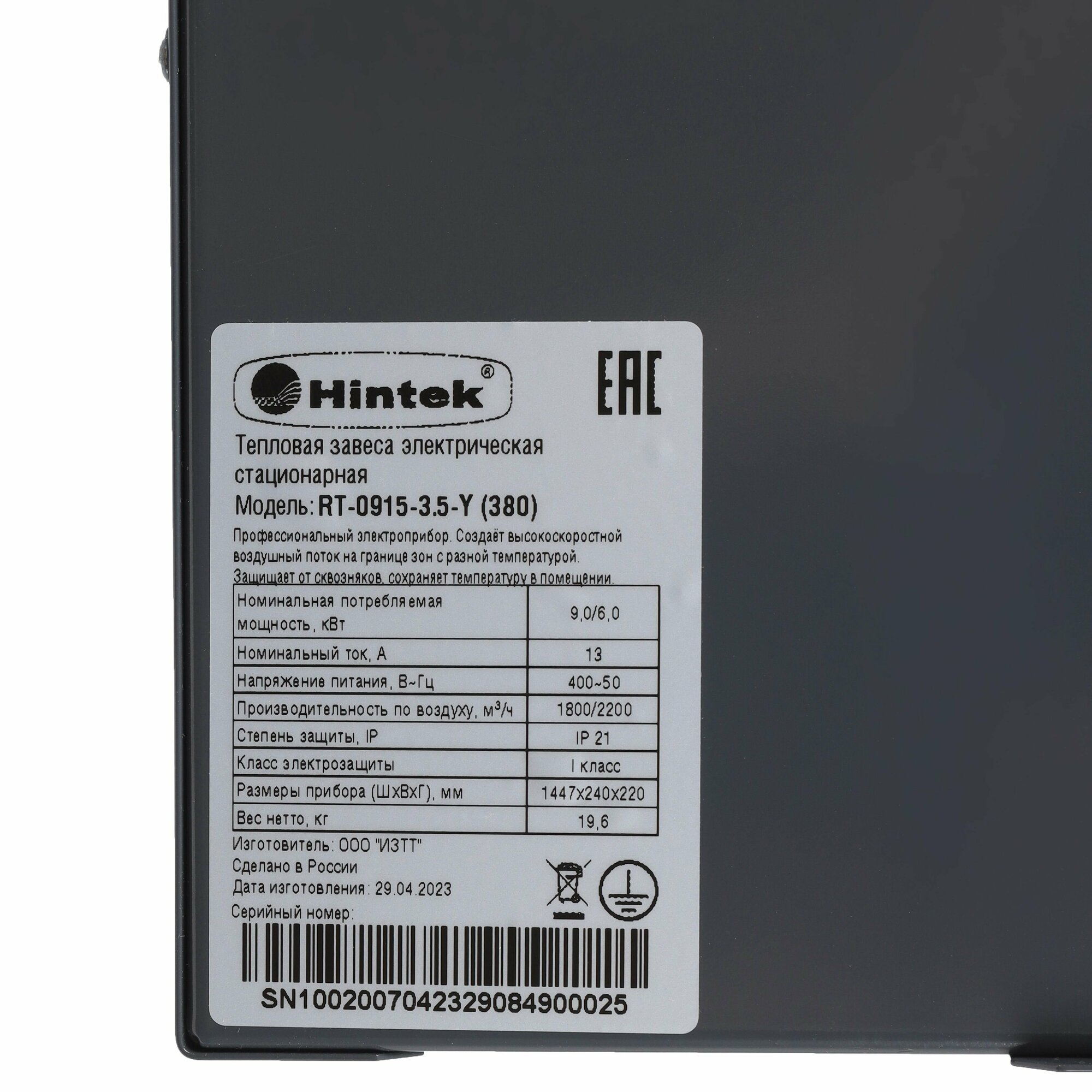 Купить Тепловая завеса Hintek RT-0915-3.5-Y 380 В, 9000 Вт