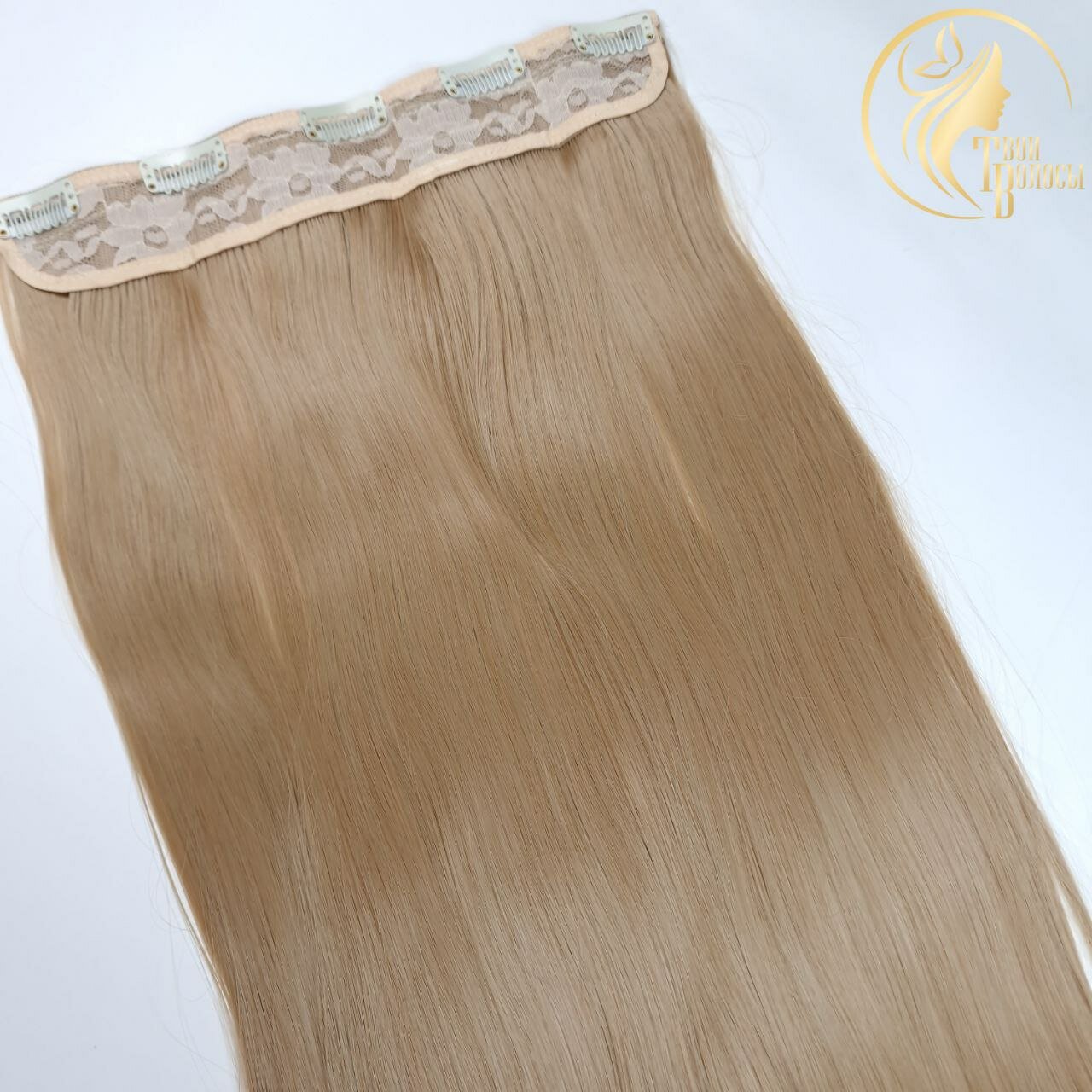 Твои волосы/ Широкая прядь-хвост, волосы на заколках, прямые 60 см., Пшеничный