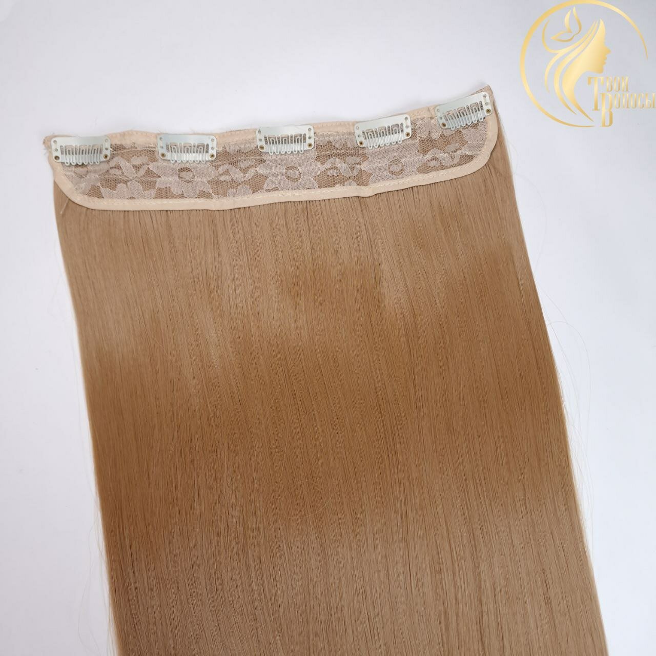 Купить Твои волосы/ Широкая прядь-хвост, волосы на заколках, прямые 60 см., Пшеничный
