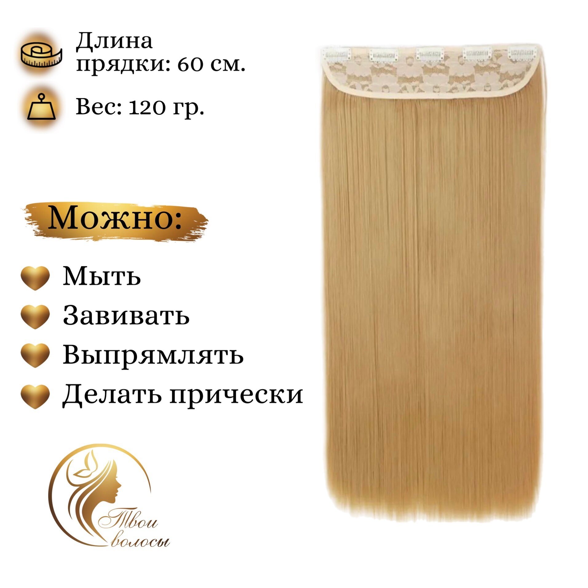 СохранитьТвои волосы/ Широкая прядь-хвост, волосы на заколках, прямые 60 см., Пшеничный интересное: