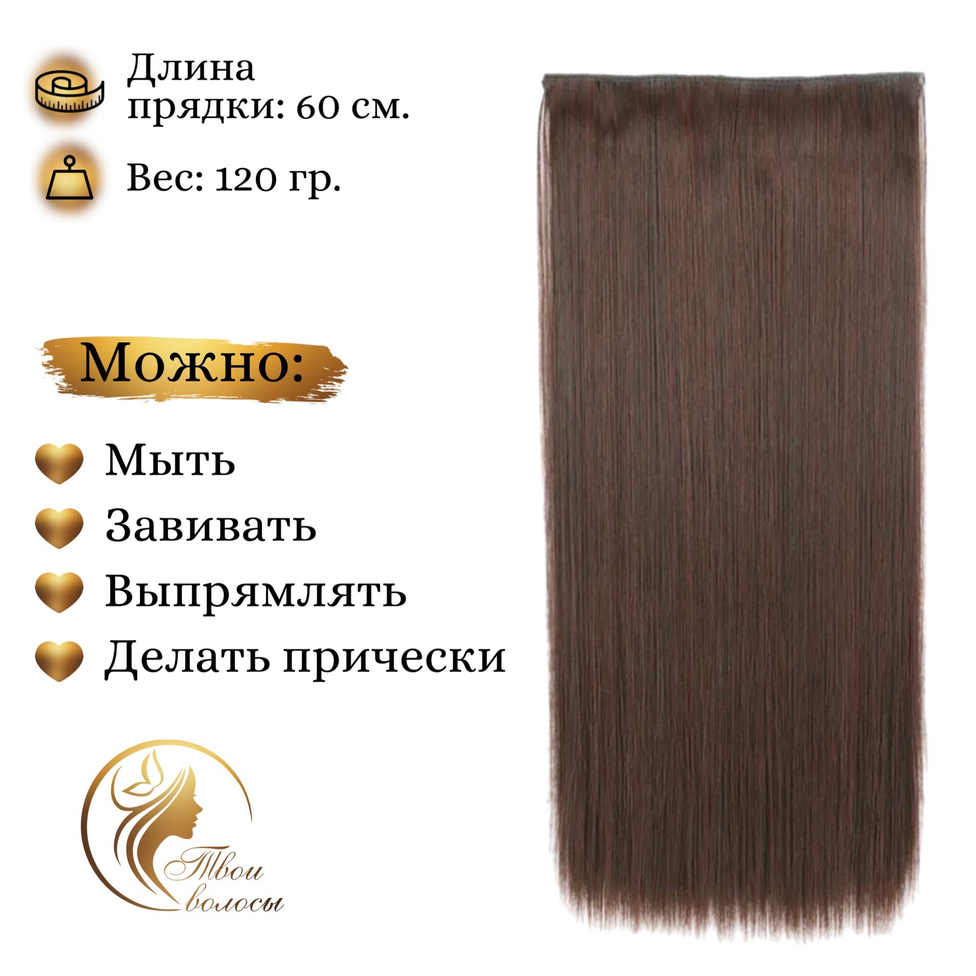 Купить Широкая прядь-хвост, волосы накладные на заколках, прямые 60 см., Каштановый