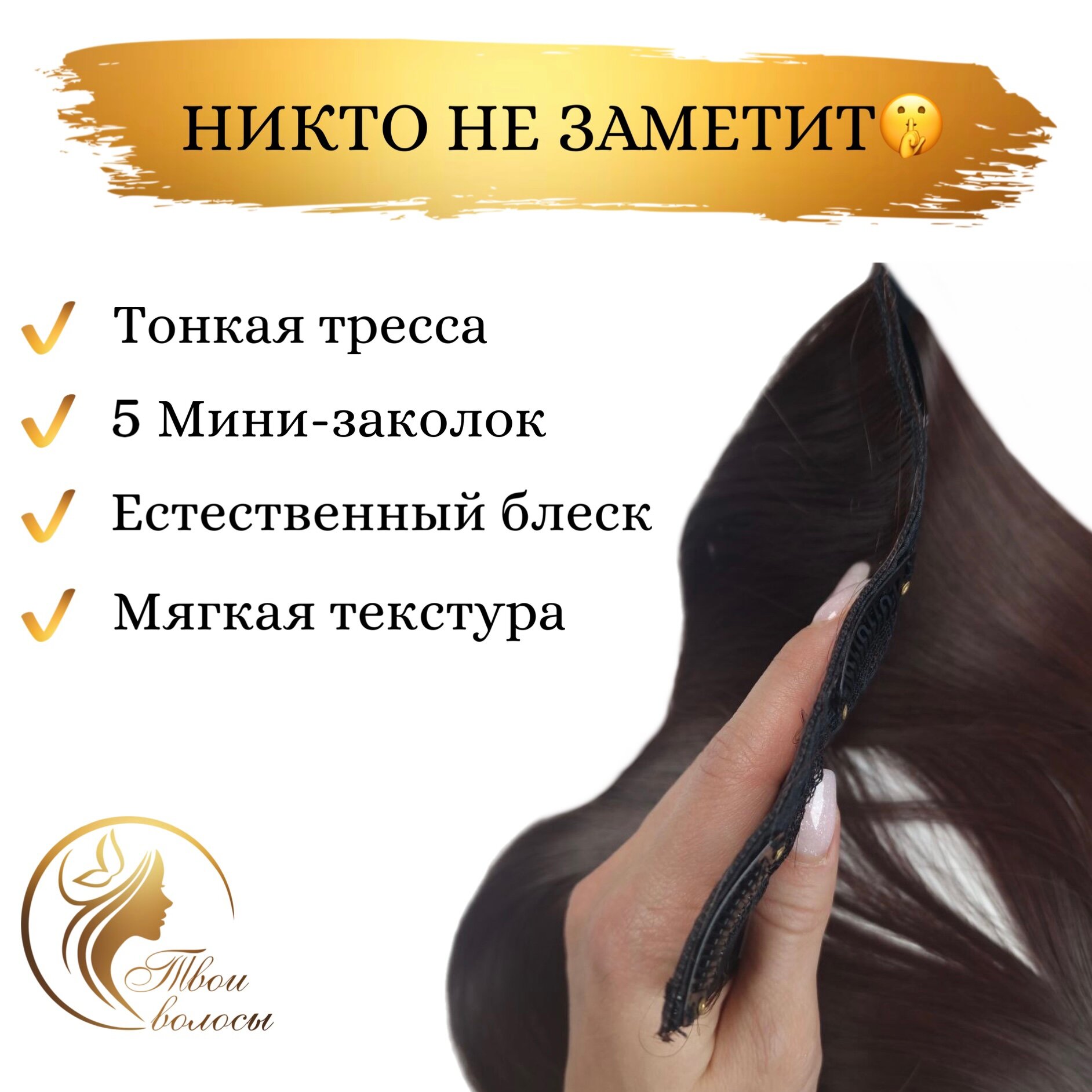 Широкая прядь-хвост, волосы накладные на заколках, прямые 60 см.,