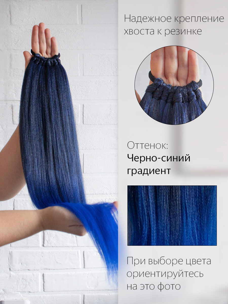 Купить Накладной хвост на резинке Черно-синий градиент 65см/90г ZEBRA_BRAIDS Шиньон/Афрохвост