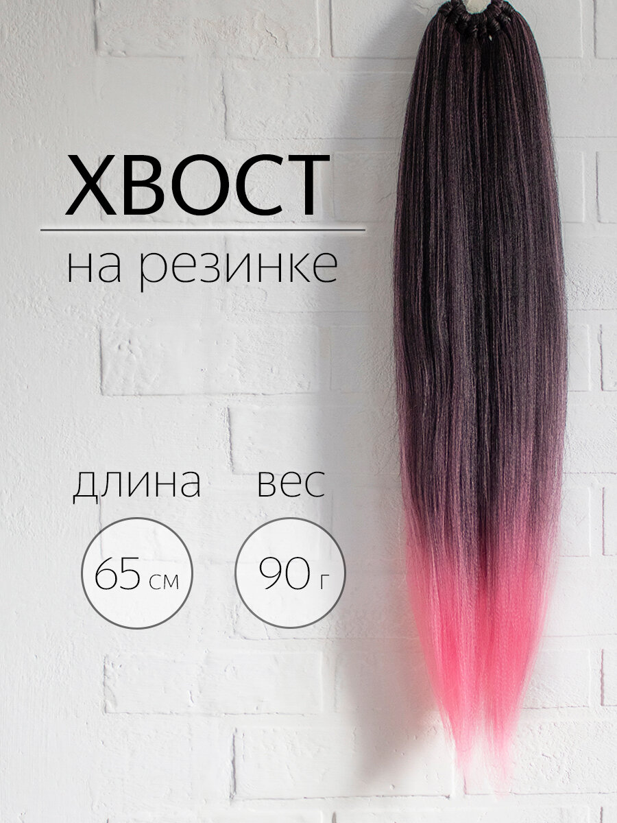 Купить Накладной Хвост на резинке Черно-розовый градиент 65см/90г ZEBRA_BRAIDS Шиньон/Афрохвост