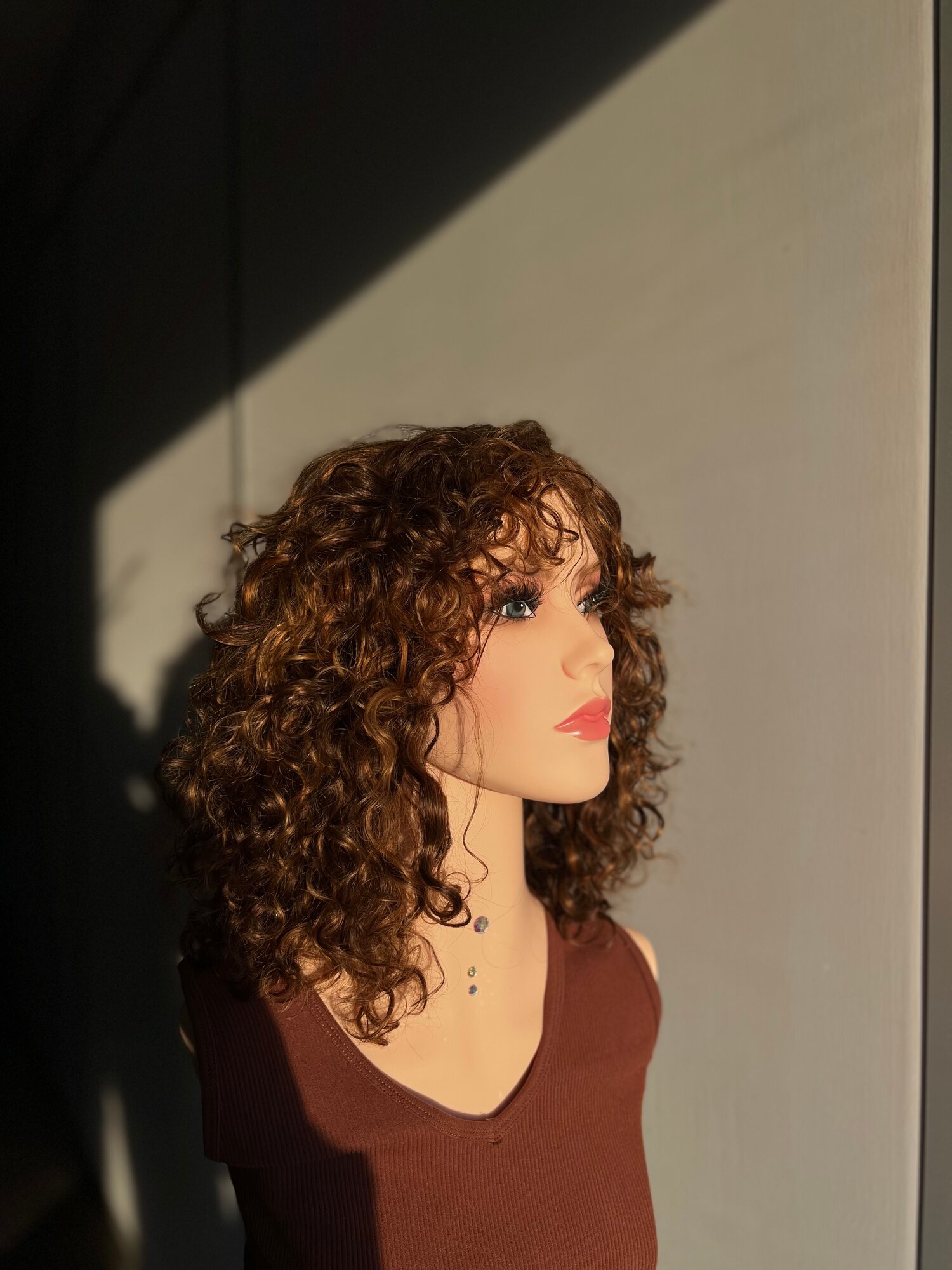 Парик из натурального волоса кудрявый ONLYSHAIR каштан