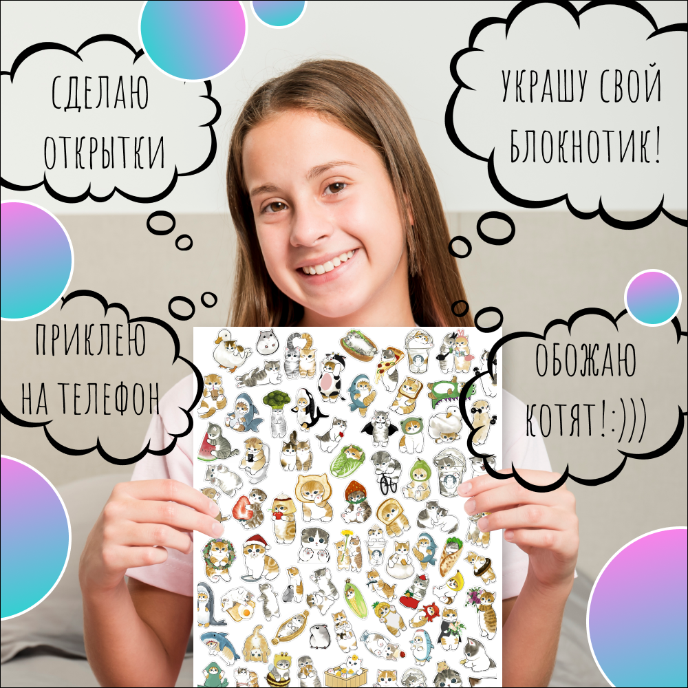 СохранитьНаклейки котики набор, стикеры на телефон 84 шт интересное: