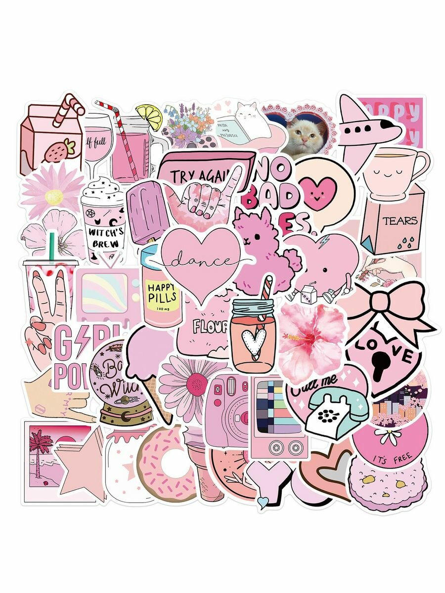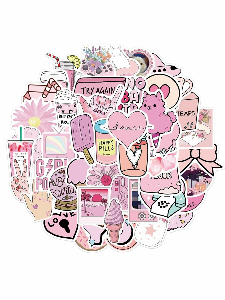 Стикеры розовые 50 шт. многоразовые мультяшные "Y2K" интересное: