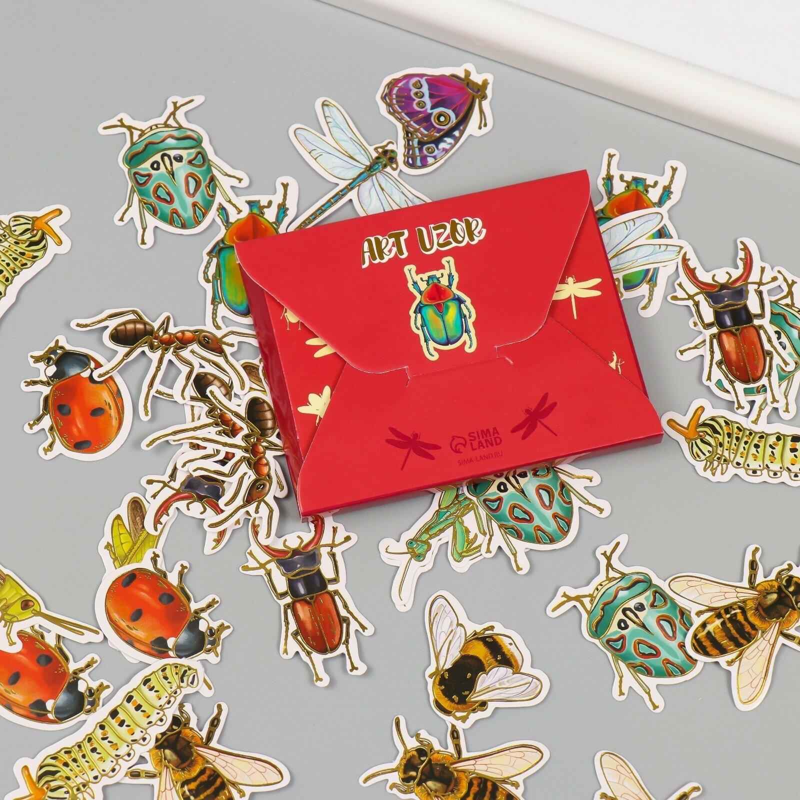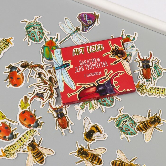 Купить Наклейки для творчества "Насекомые" тиснение золото набор 48 шт 9х7х0,8 см