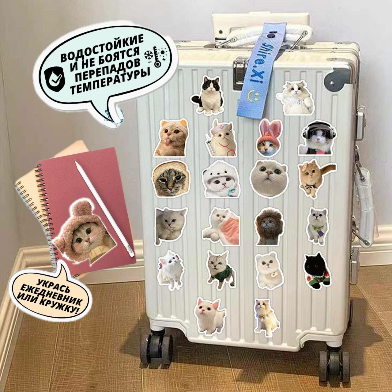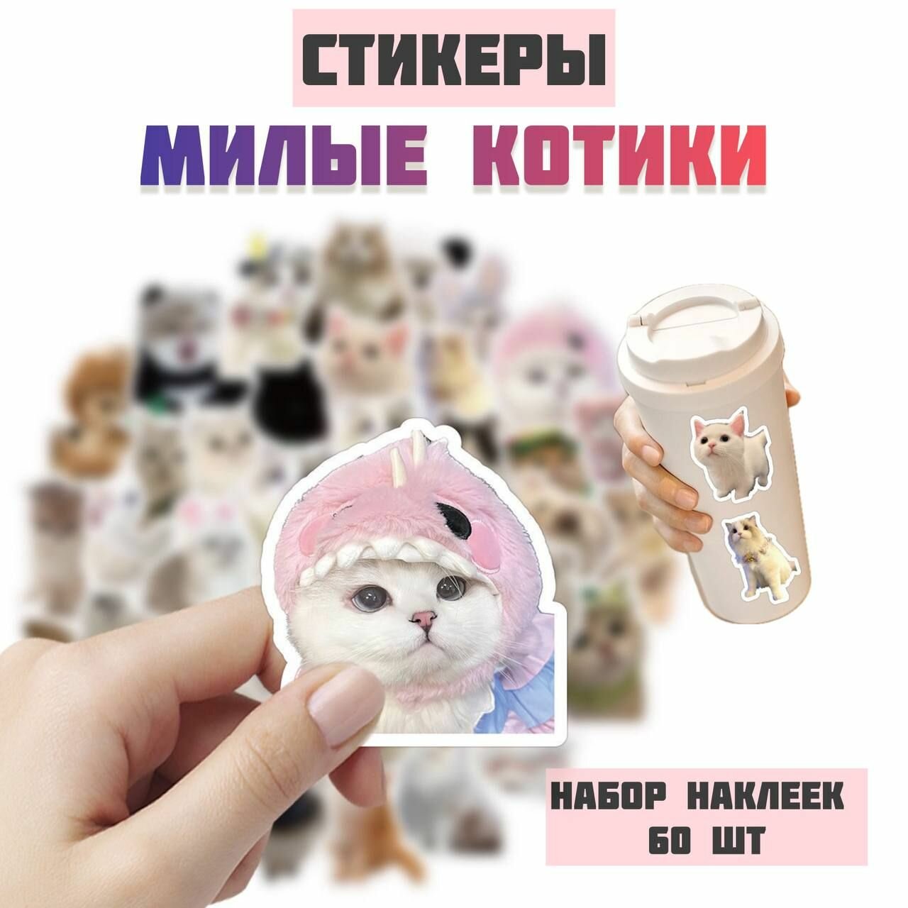 Стикеры "Котики" 60 шт. Милые и забавные наклейки с изображением котиков интересное: