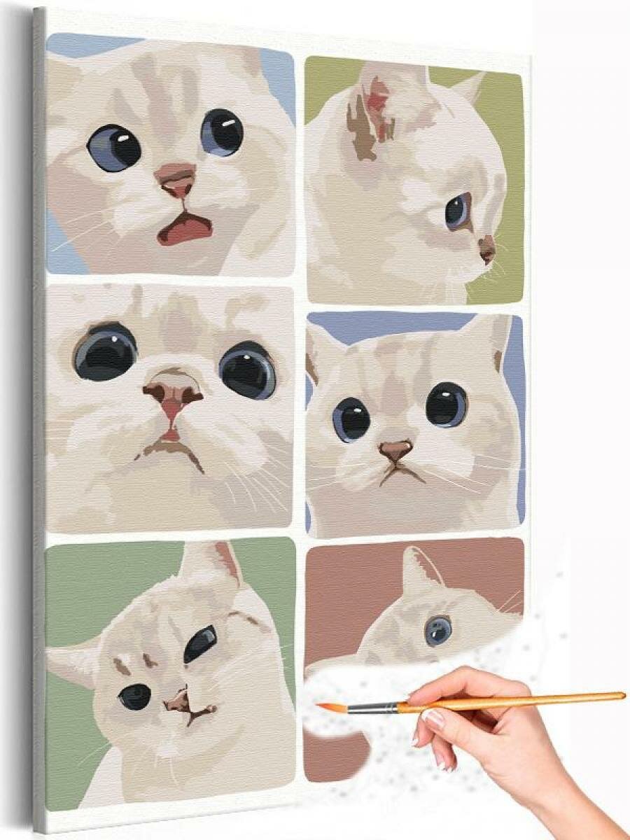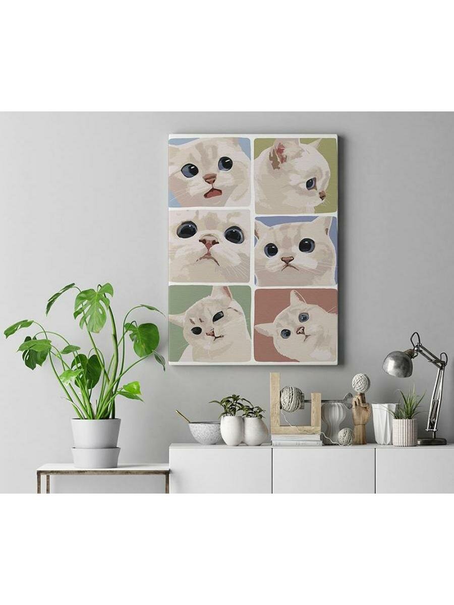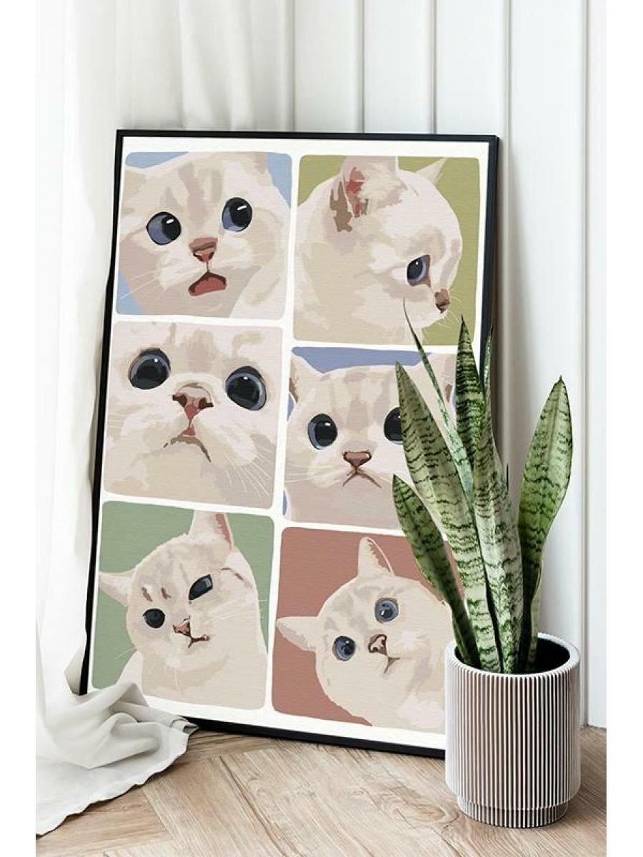 Купить Эмоции белого котика Мем Кот Кошка Животные Смешная Раскраска картина по номерам на холсте 40х60