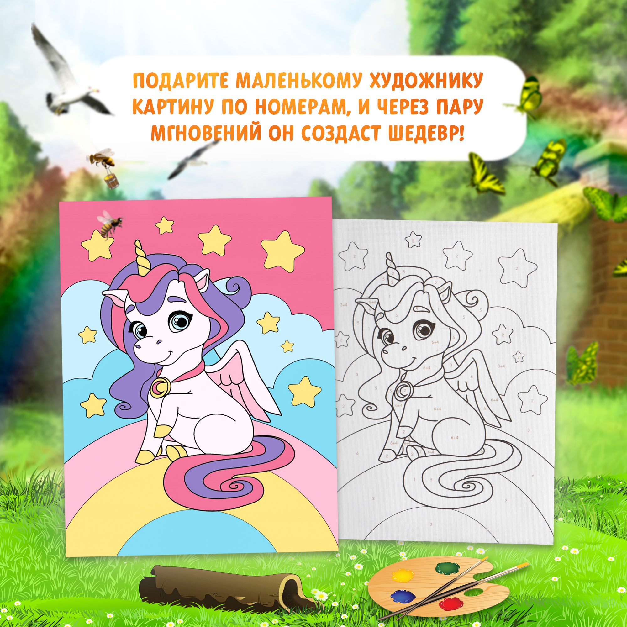 Купить Картина по номерам «Единорог на радуге», 21×15 см