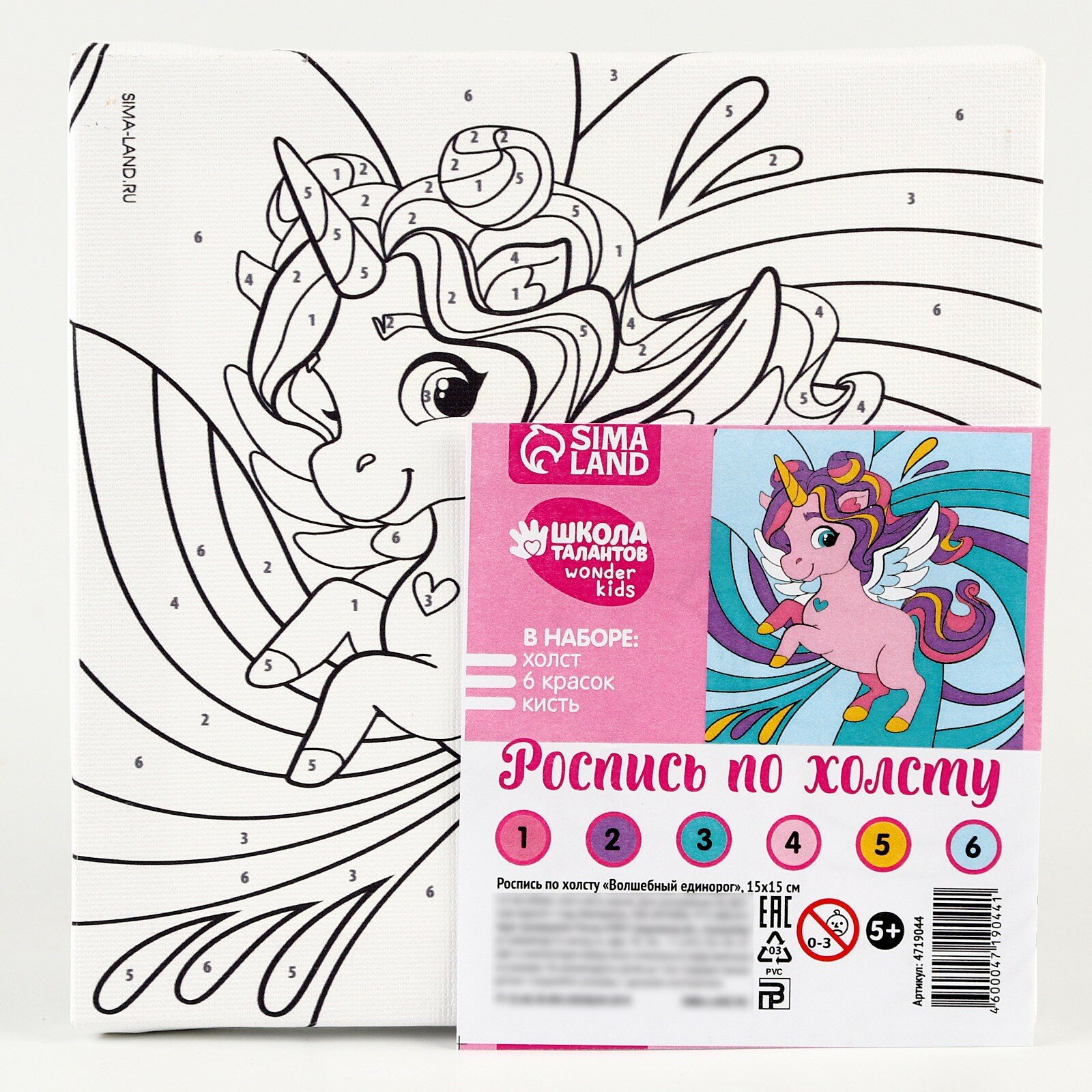 Картина по номерам Школа Талантов "Волшебный Единорог", 15x15cм, холст на подрамнике