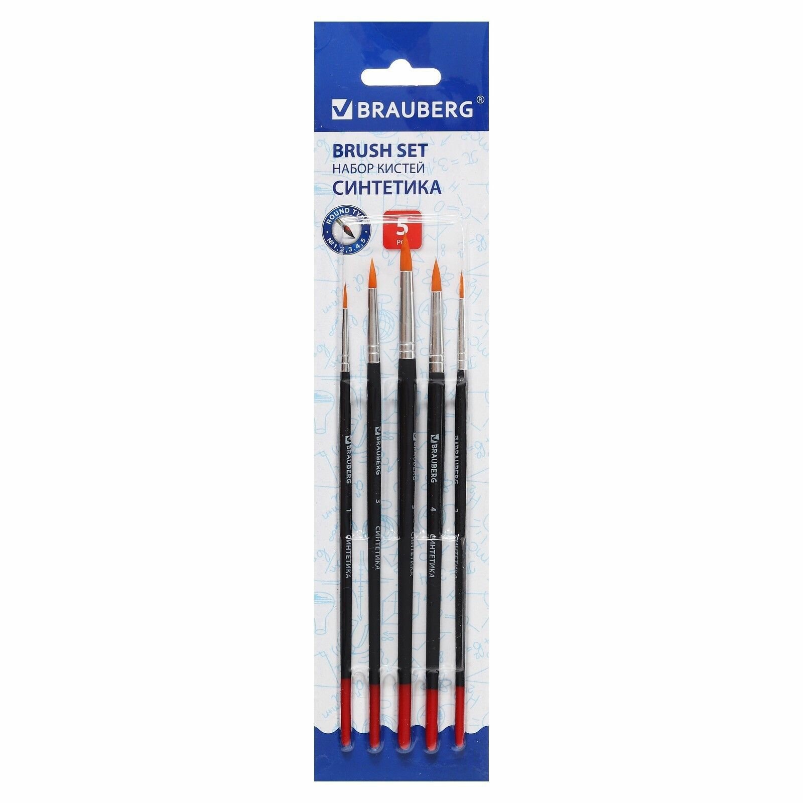 Кисти/кисточки для рисования Brauberg, набор из 5 шт, (синтетическая круглая № 1,2,3,4,5), блистер, 200218