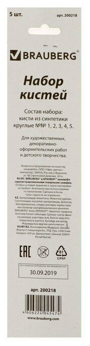 Кисти/кисточки для рисования Brauberg, набор из 5 шт., (синтетическая круглая № 1,2,3,4,5) интересное:
