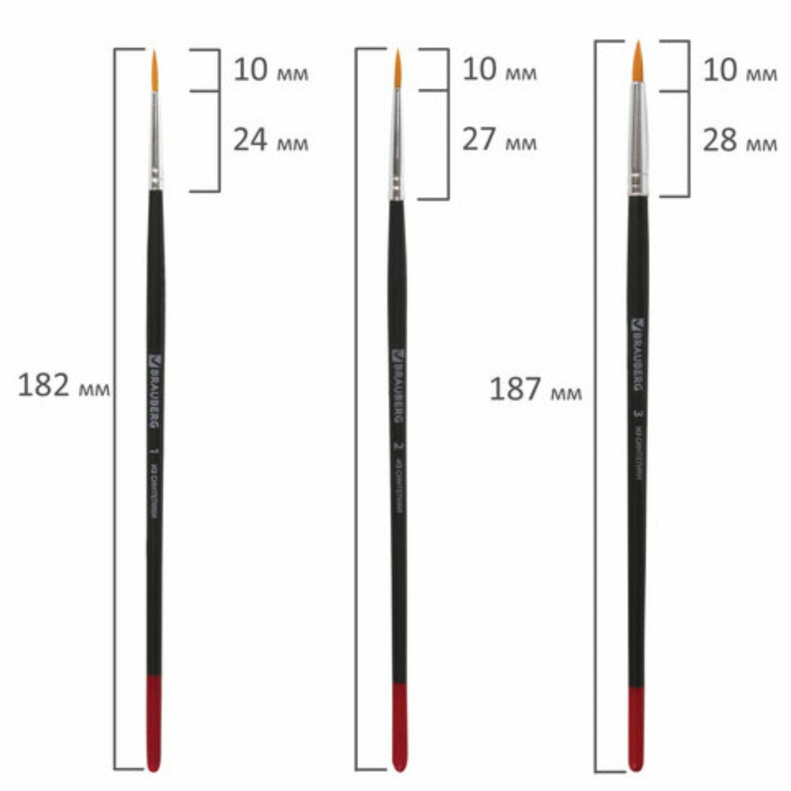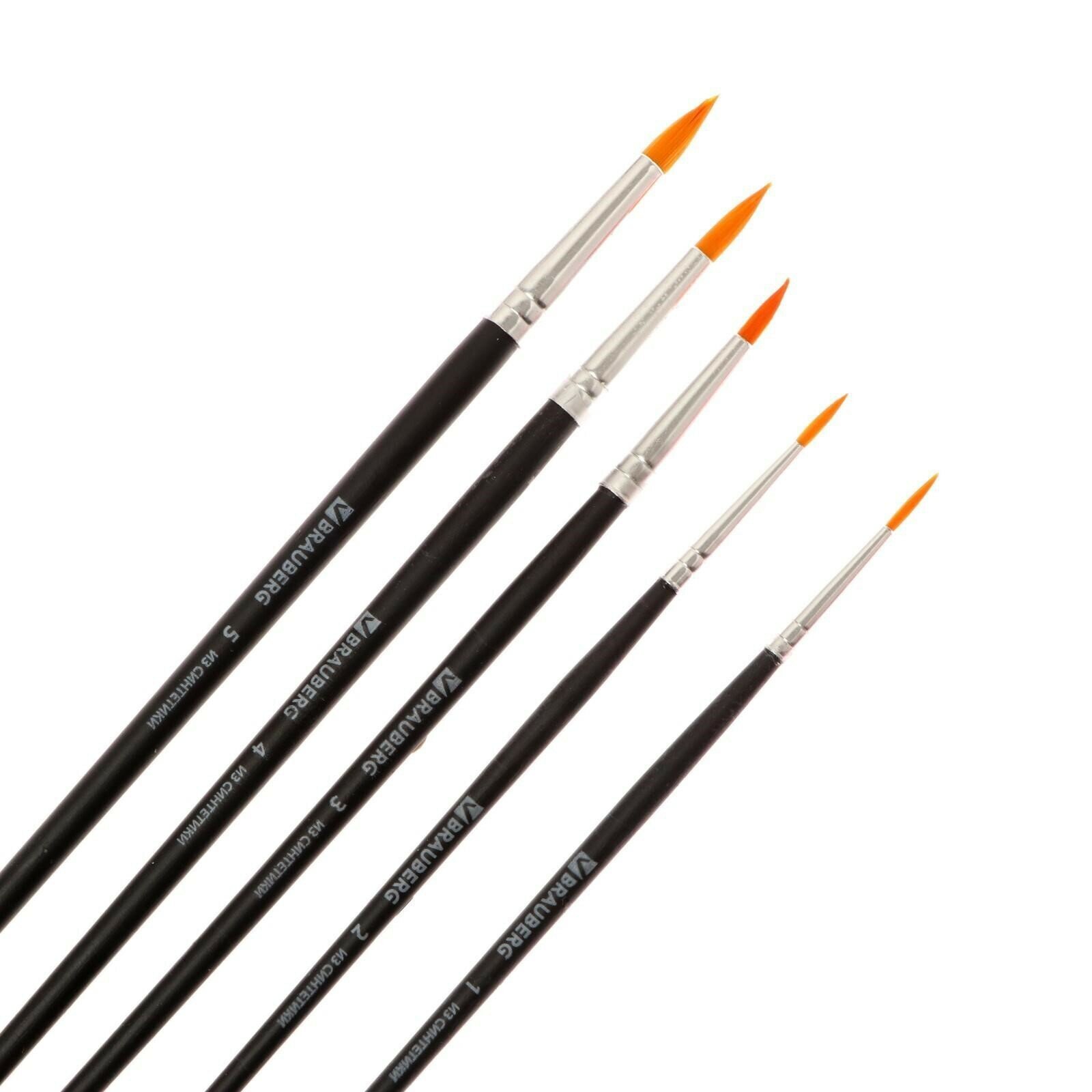 Кисти BRAUBERG (брауберг), набор 5 шт. (синтетическая круглая № 1, 2, 3, 4, 5), блистер