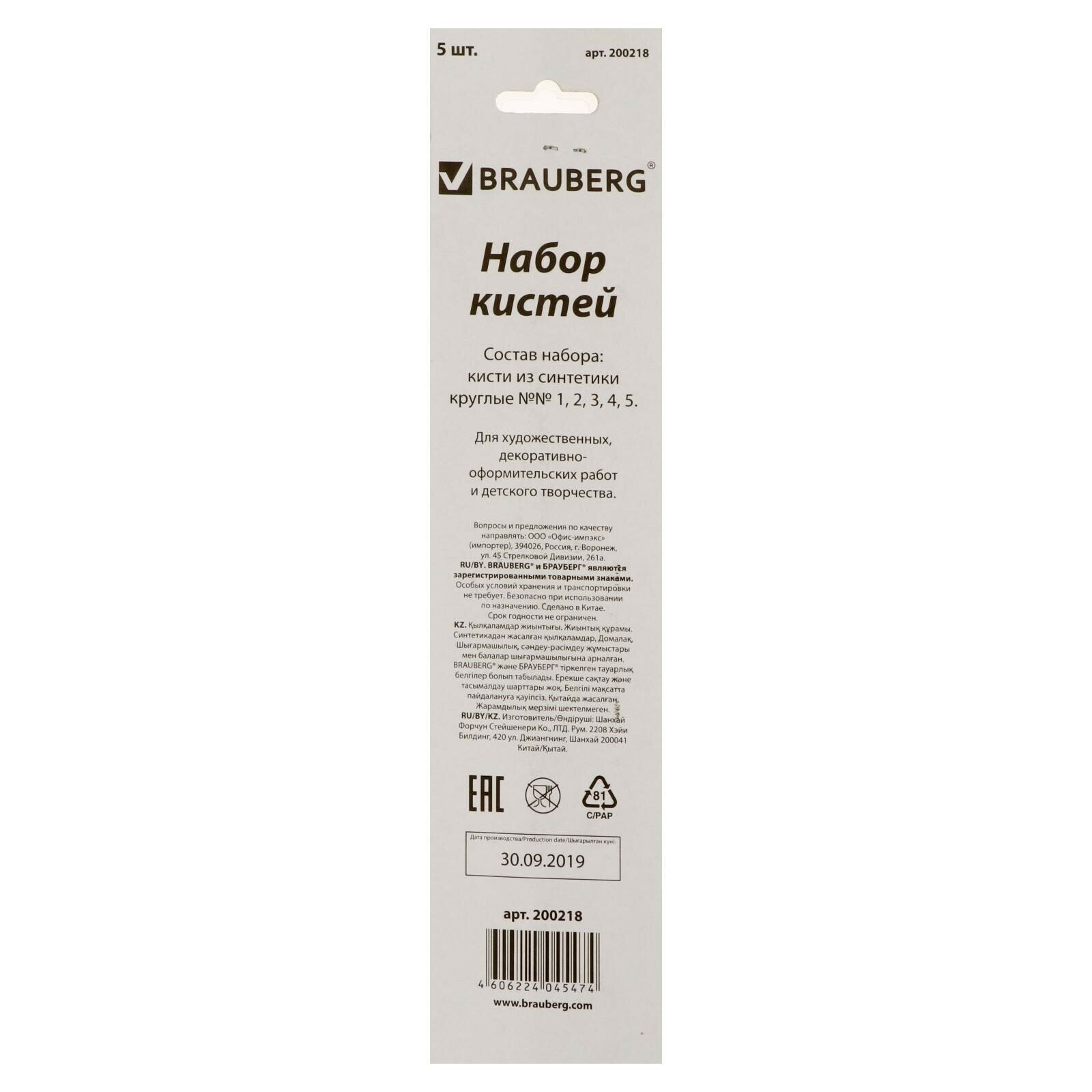 Кисти/кисточки для рисования Brauberg, набор из 5 шт., (синтетическая круглая № 1,2,3,4,5), блистер, 200218