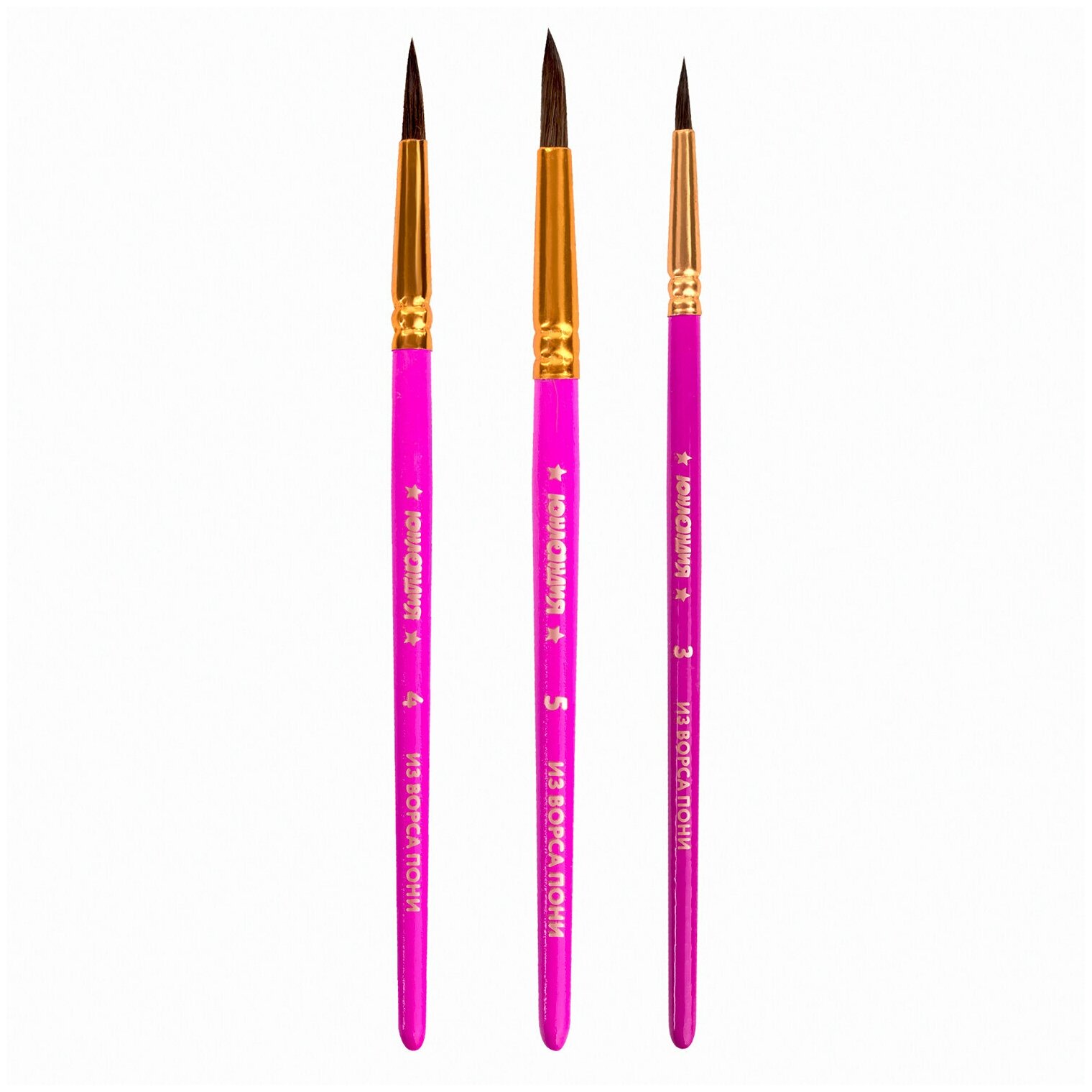 Кисти / кисточки для акварели, гуаши для рисования Юнландия, набор 3 штуки (пони: круглые № 3, 4, 5), 200885 интересное: