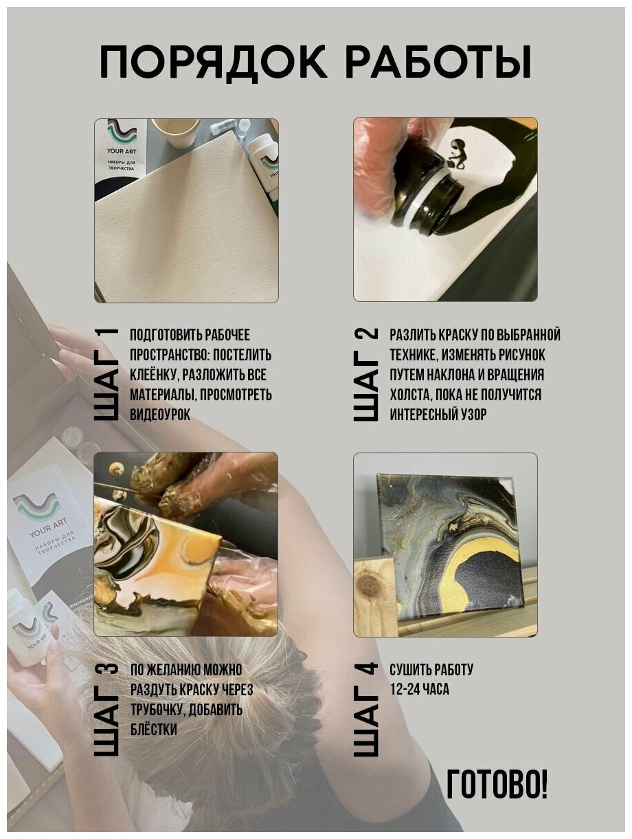 Набор для рисования и творчества YOUR ART BOX в технике Флюид арт для взрослых и детей "денежнаяэнергия", картина на холсте 20x20, 3 цвета