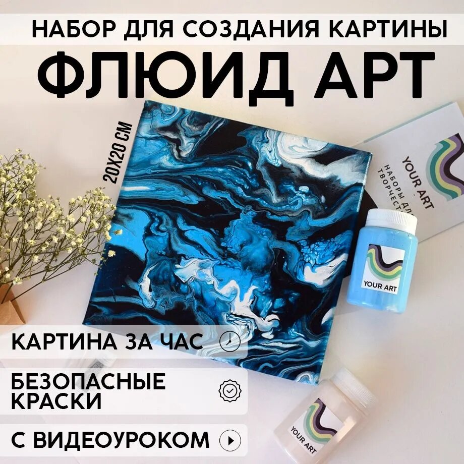 Набор для рисования и творчества YOUR ART BOX в технике флюид-арт/подарочный набор, холст 20x20 см, глаз моря