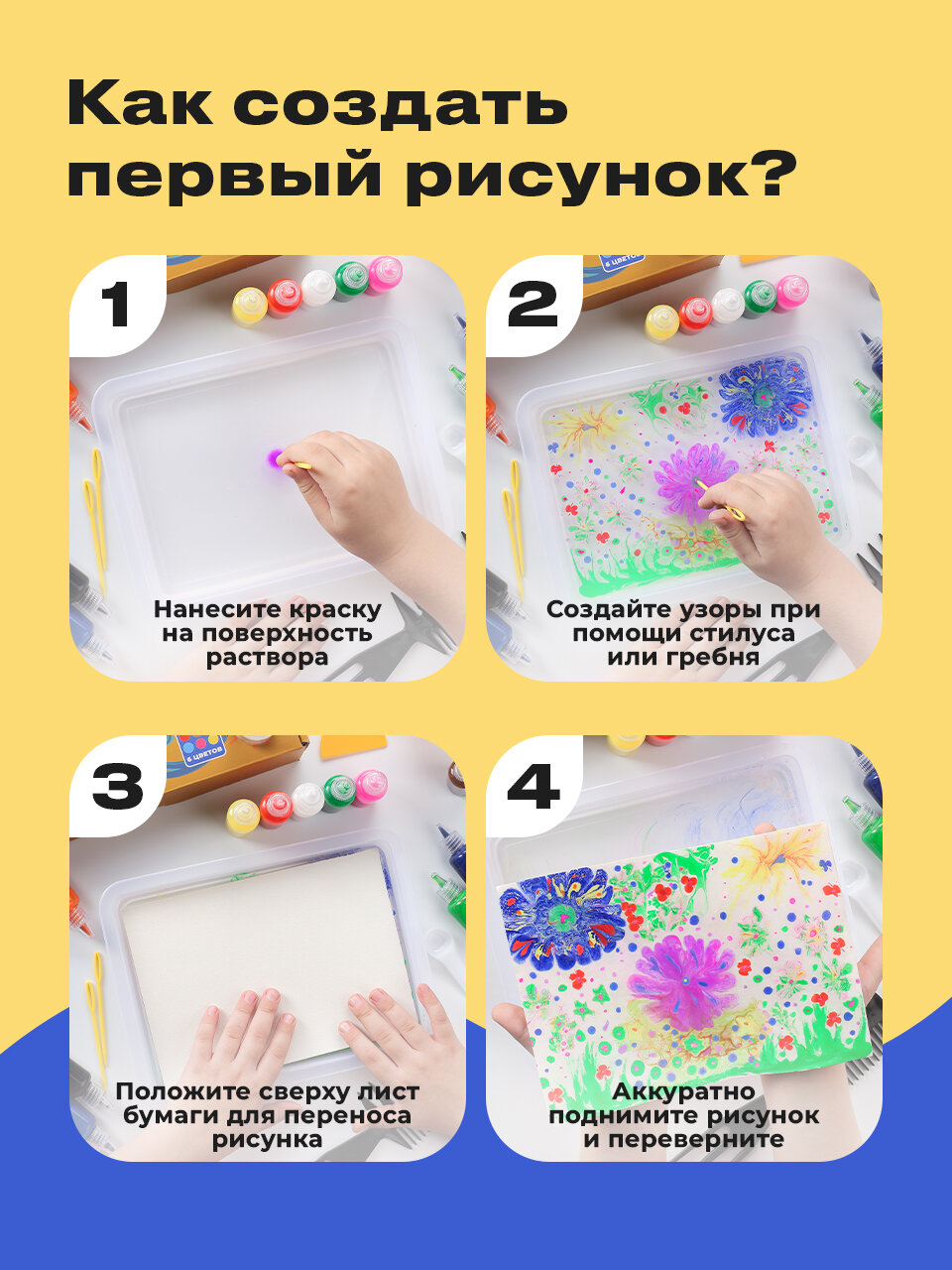 Купить Набор для рисования Эбру, Kids Zone, Рисование на воде для детей/ Подарочный набор для рисования и творчества