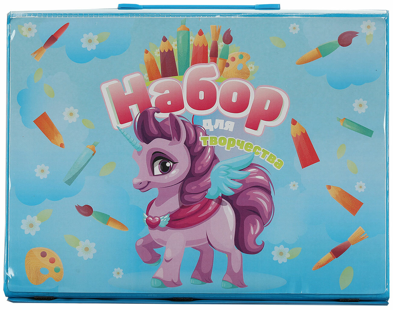 | Комплектация | бумага; линейка; ластик; палитра; масляная пастель - 48 шт; восковые мелки - 24 шт; цветные карандаши - 24 шт; фломастеры - 24 шт; фломастеры водные - 12 шт; краски - 18 шт |