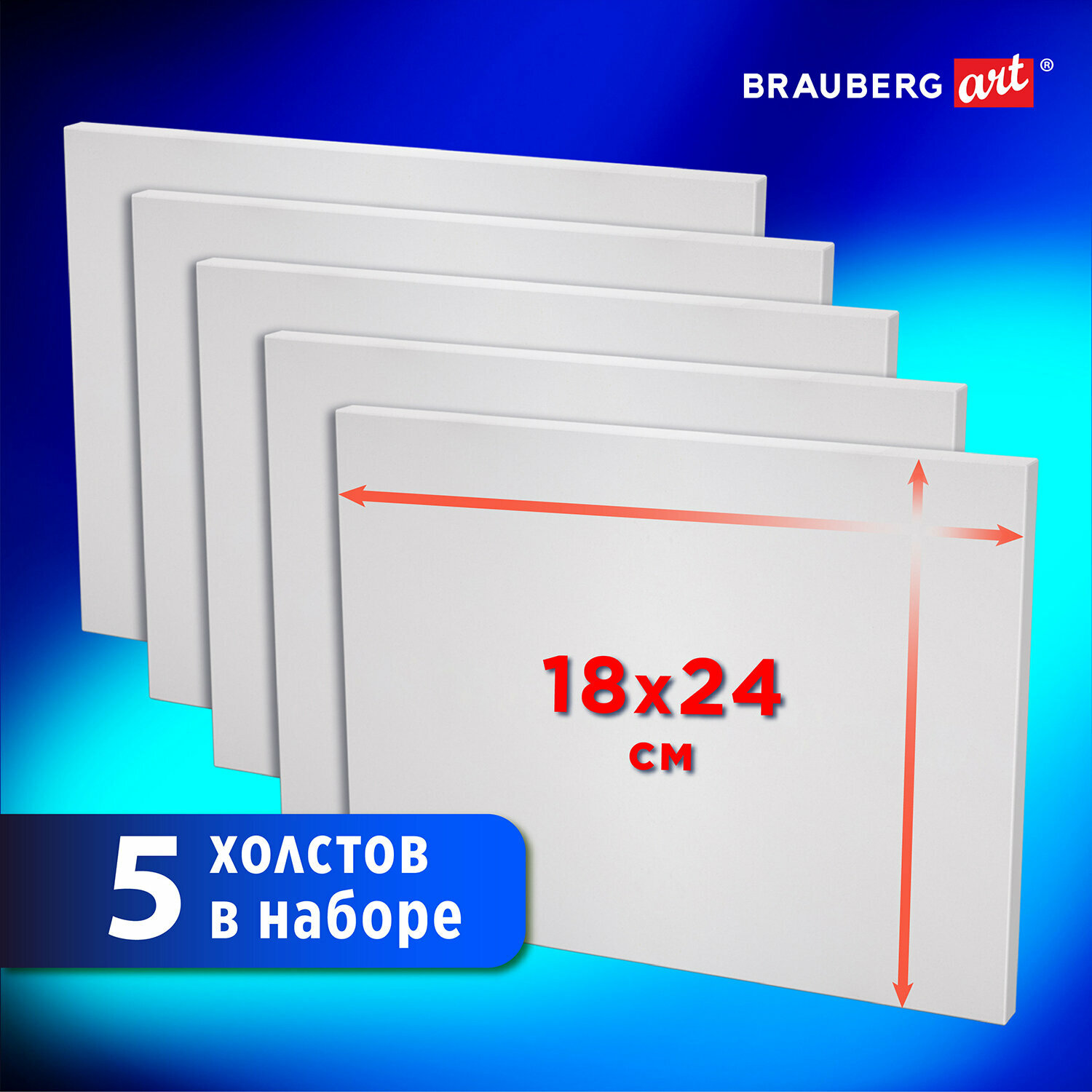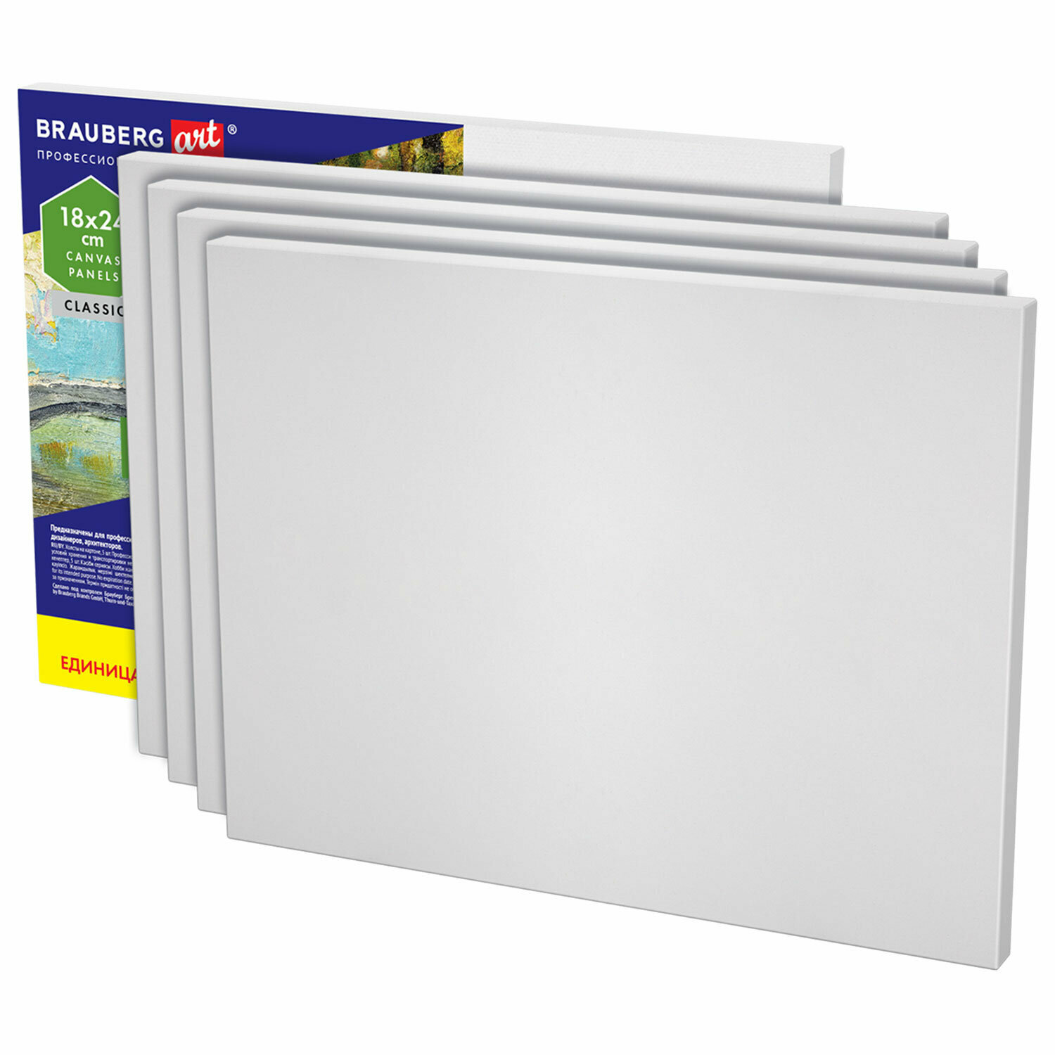 Купить Холст на картоне набор 5 штук 18x24 см, 280 г м2, грунт, 100% хлопок, Brauberg Art Classic, 192510