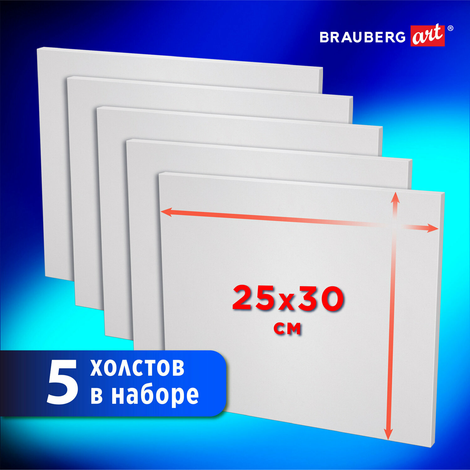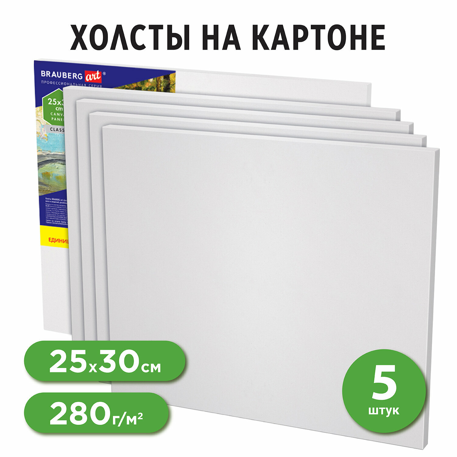 Холст на картоне набор 5 штук 30x30 см, 280 г м2, грунт, 100% хлопок, Brauberg Art Classic, 192508