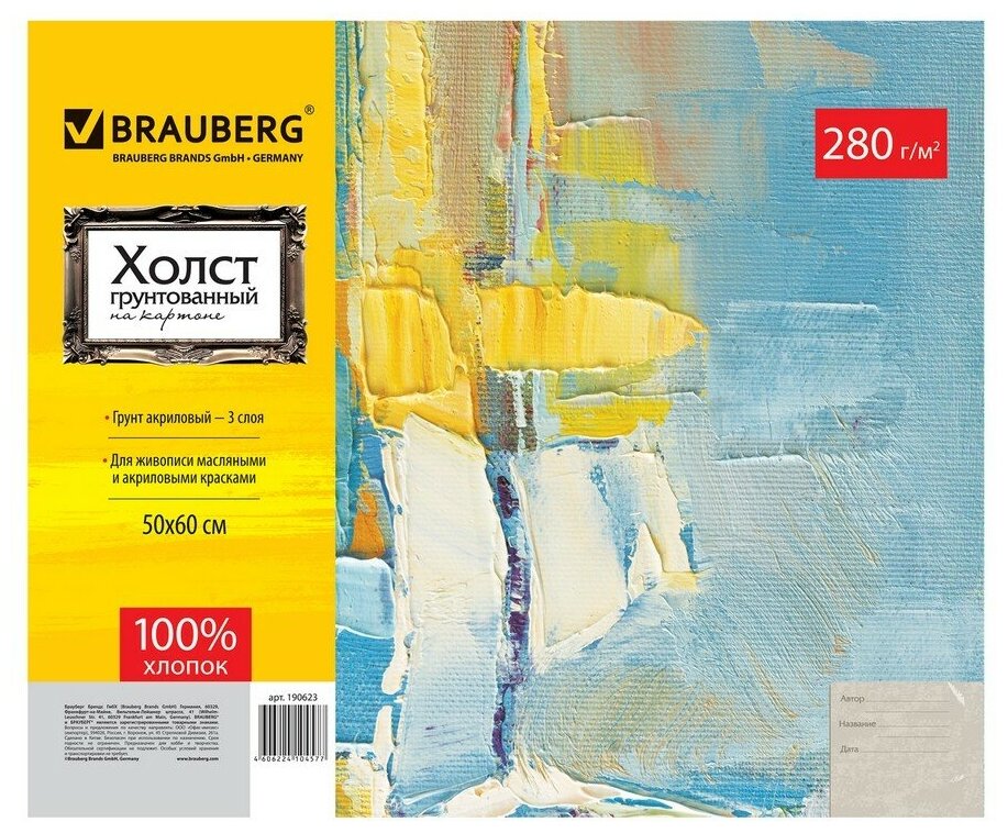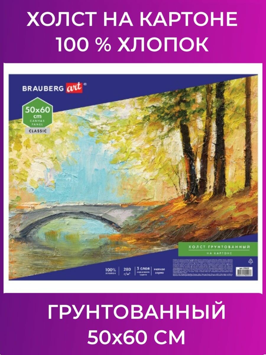 Холст на картоне Brauberg , 50x60 см, хлопок, мелкое зерно