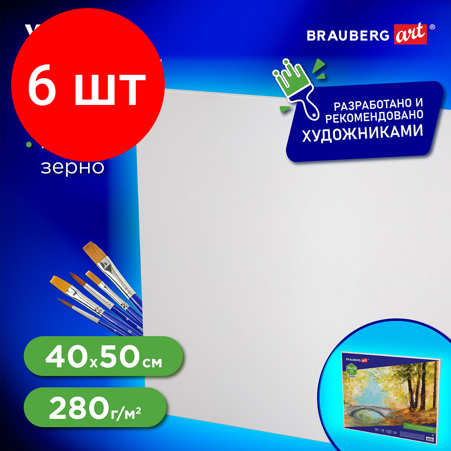 Холст грунтованный на картоне Brauberg, 50х60см, 100% хлопок, мелкое зерно (190623), 24шт.
