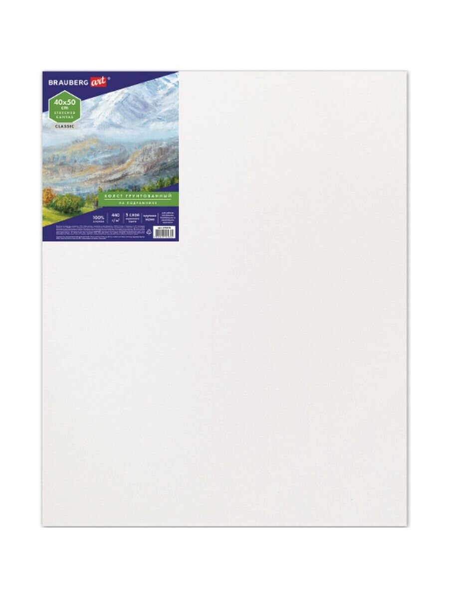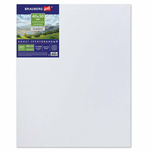 Купить Холст на подрамнике BRAUBERG ART «CLASSIC», 40×50 см, грунтованный, 100% хлопок, крупное зерно