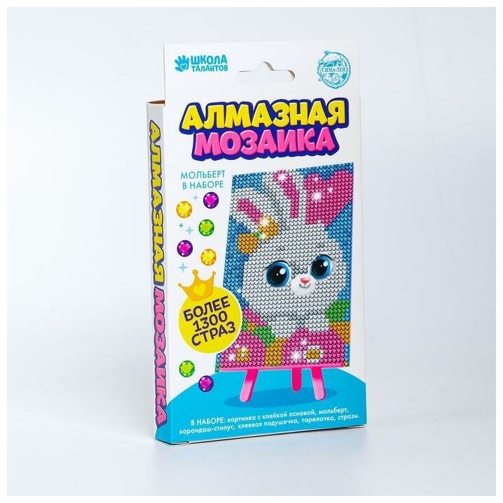 Купить Алмазная мозаика для детей "Зайка"+ емкость, стержень с клеевой подушечкой