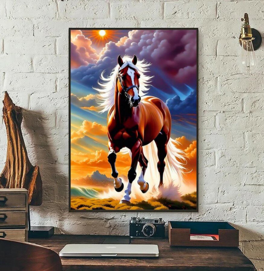 Купить Алмазная мозаика 40x50 см. на холсте с подрамником. Коричневый конь под облаками