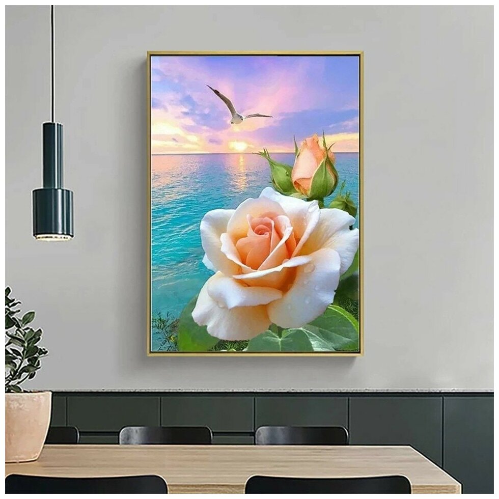 Купить Алмазная мозаика 40x50 см. на холсте с подрамником. Роза на фоне моря