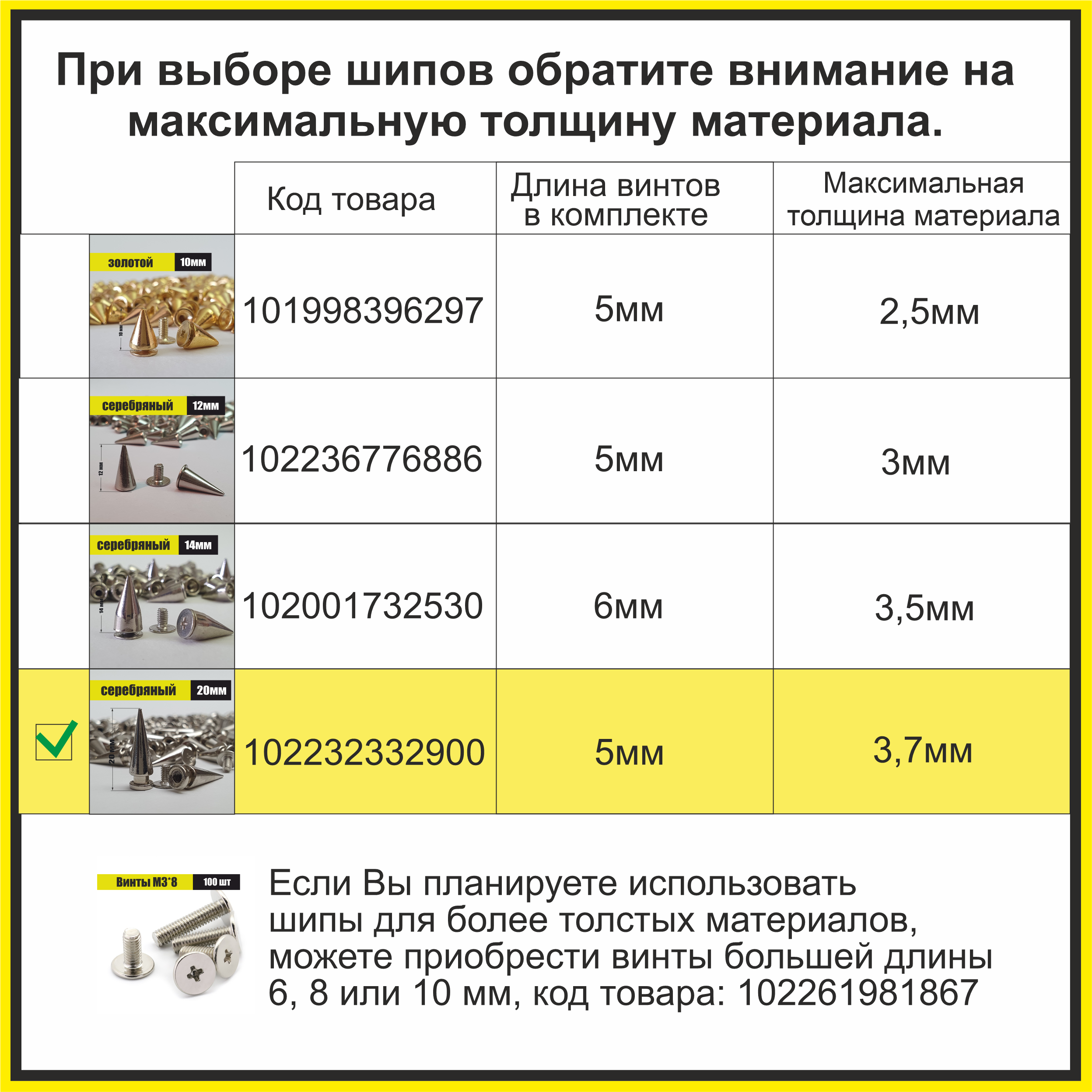 Декоративные шипы для одежды и аксессуаров (20 мм 50 шт) интересное: