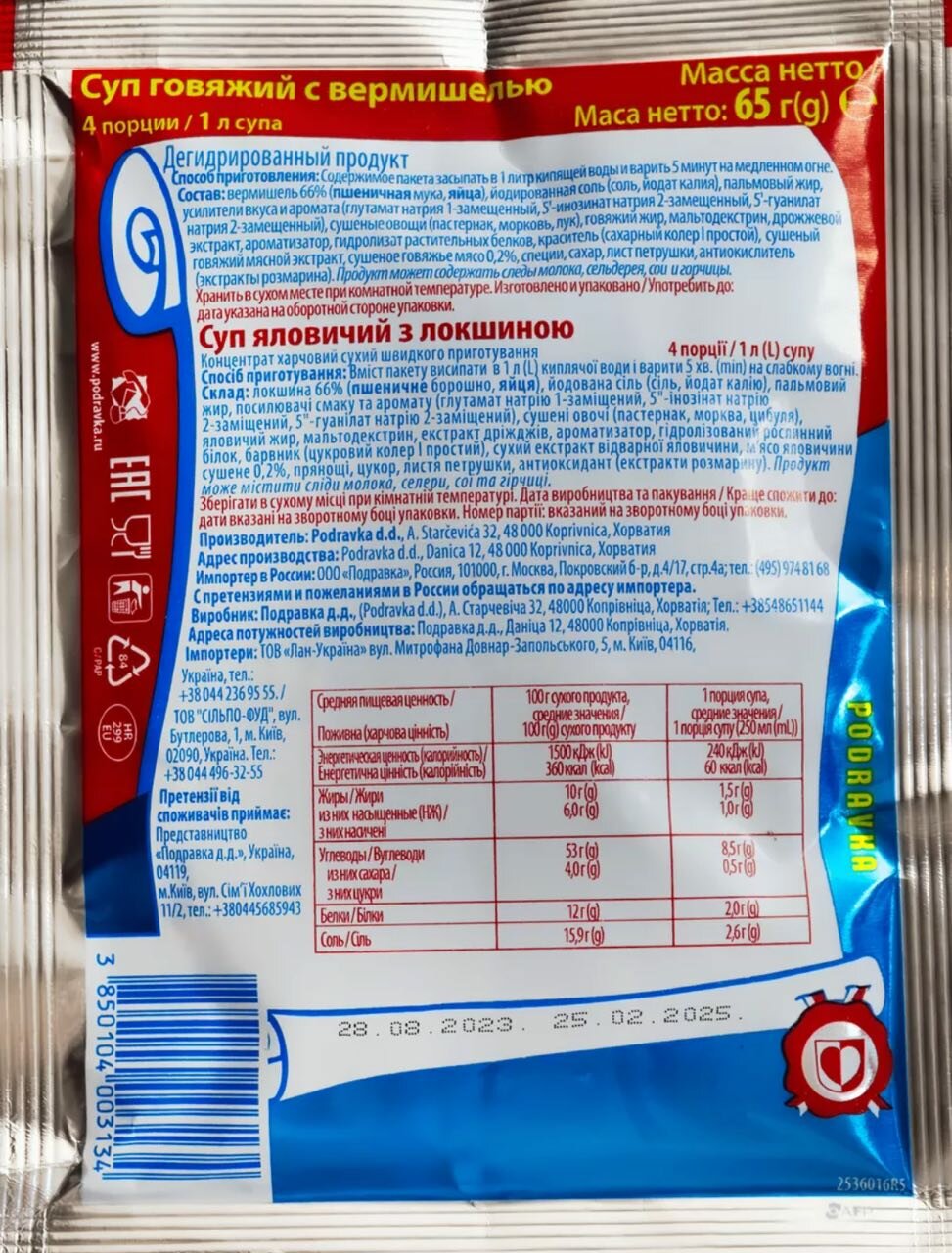 Суп быстрого приготовления Дачный суп "Мясной с вермишелью" 60 гр / 10 шт в коробке, Русский Продукт