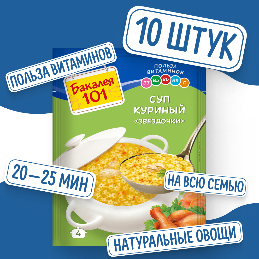 Суп Куриный 60 гр x 10 шт, Бакалея 101 интересное: