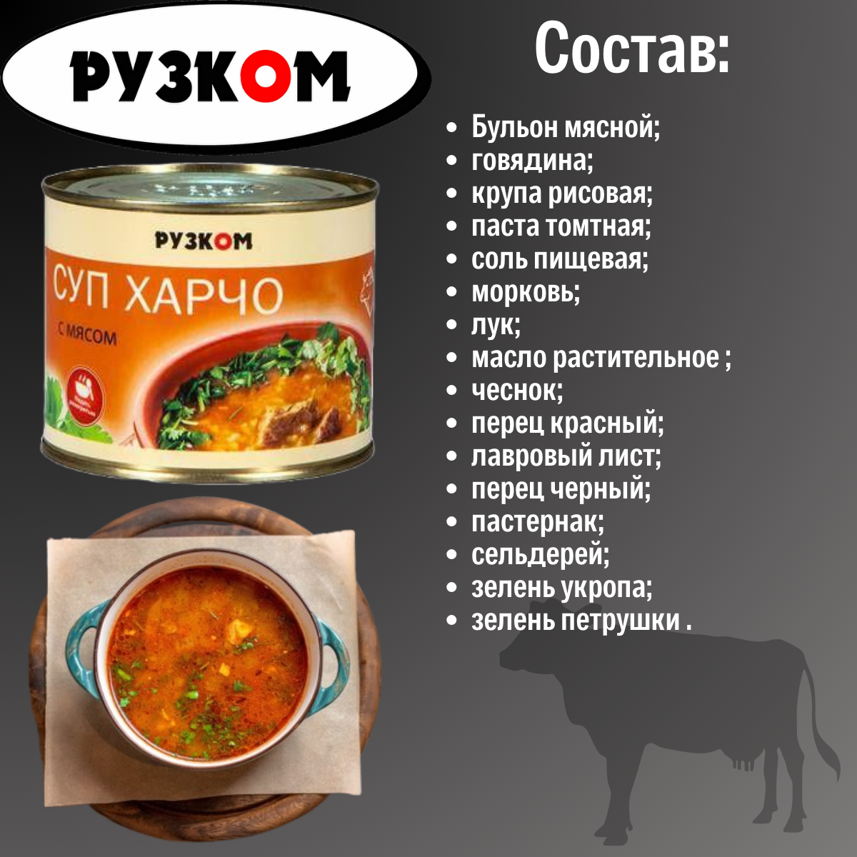 | Дополнительная информация | Суп Харчо с мясом "Рузком" 540 гр |