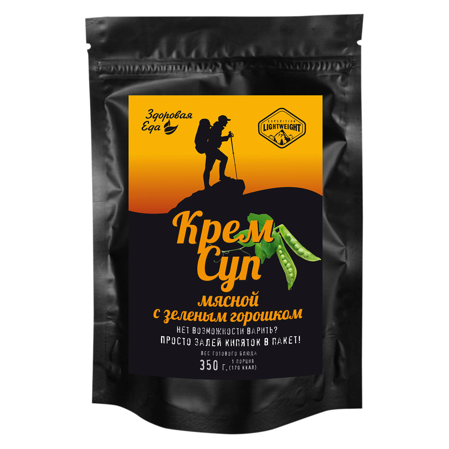 Крем-суп "Здоровая еда" быстрого приготовления мясной с зеленым горошком сублимированный для похода, 50 г