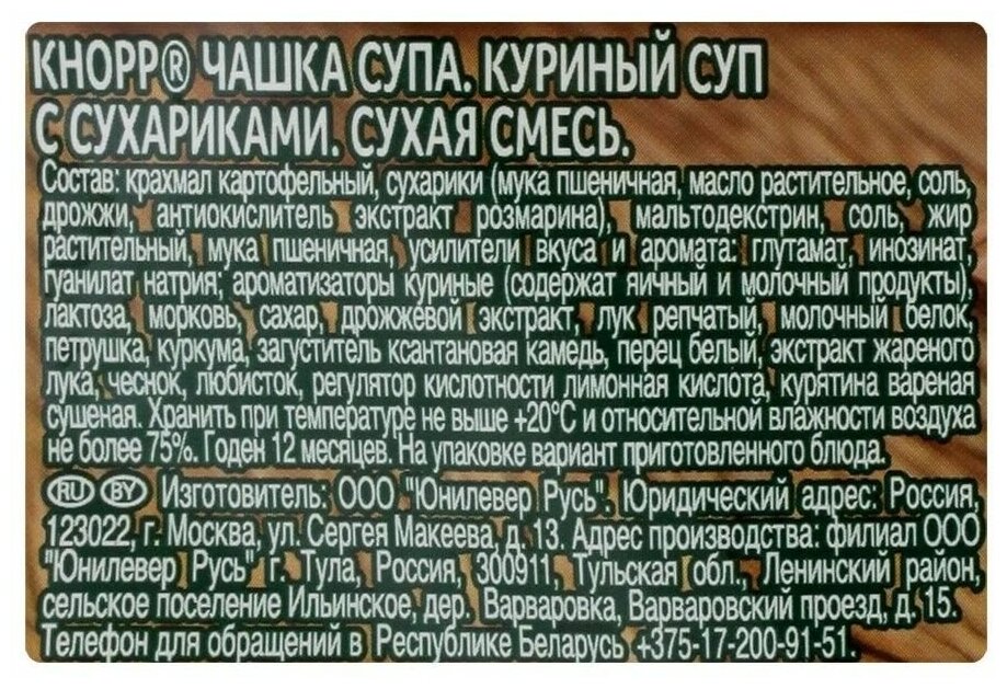 | Особенности | натуральный продукт / с вермишелью / с сухариками |