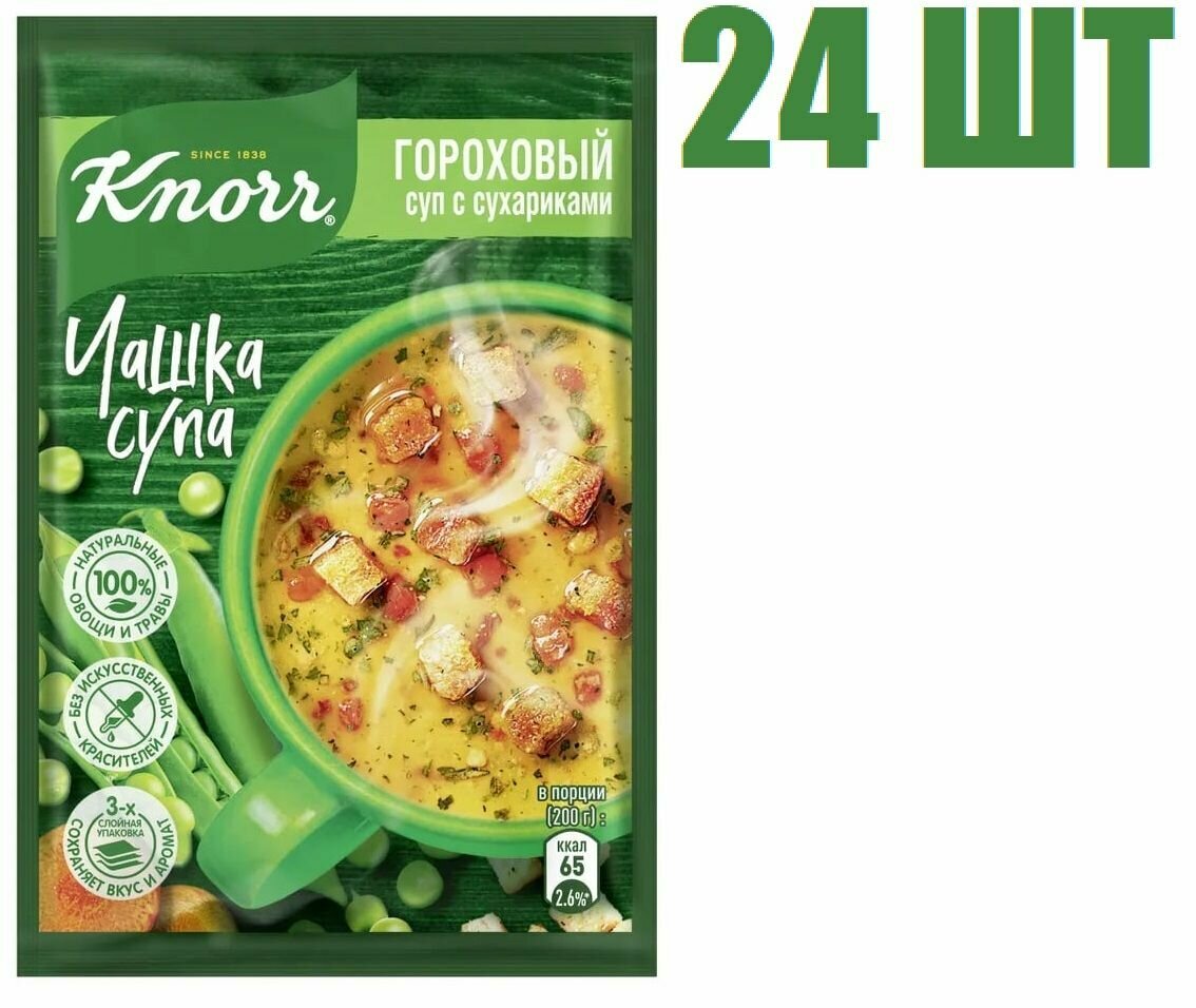 Суп быстрого приготовления, "Knorr"," Чашка Супа", "Гороховый с сухариками", 21г 24 шт интересное: