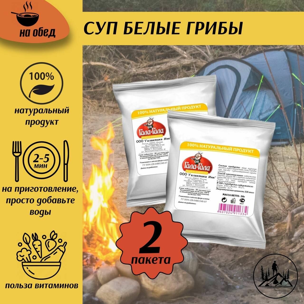 Купить Еда сублимированная в поход Суп с белыми грибами "Гала-Гала" 20 г, 2 упаковки