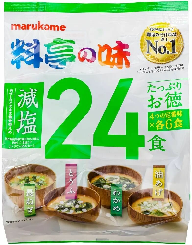 Мисо суп ассорти быстрого приготовления с пониженным содержанием соли и "Ассорти" (2 штуки в наборе), 48 порций, Marukome, Япония интересное: