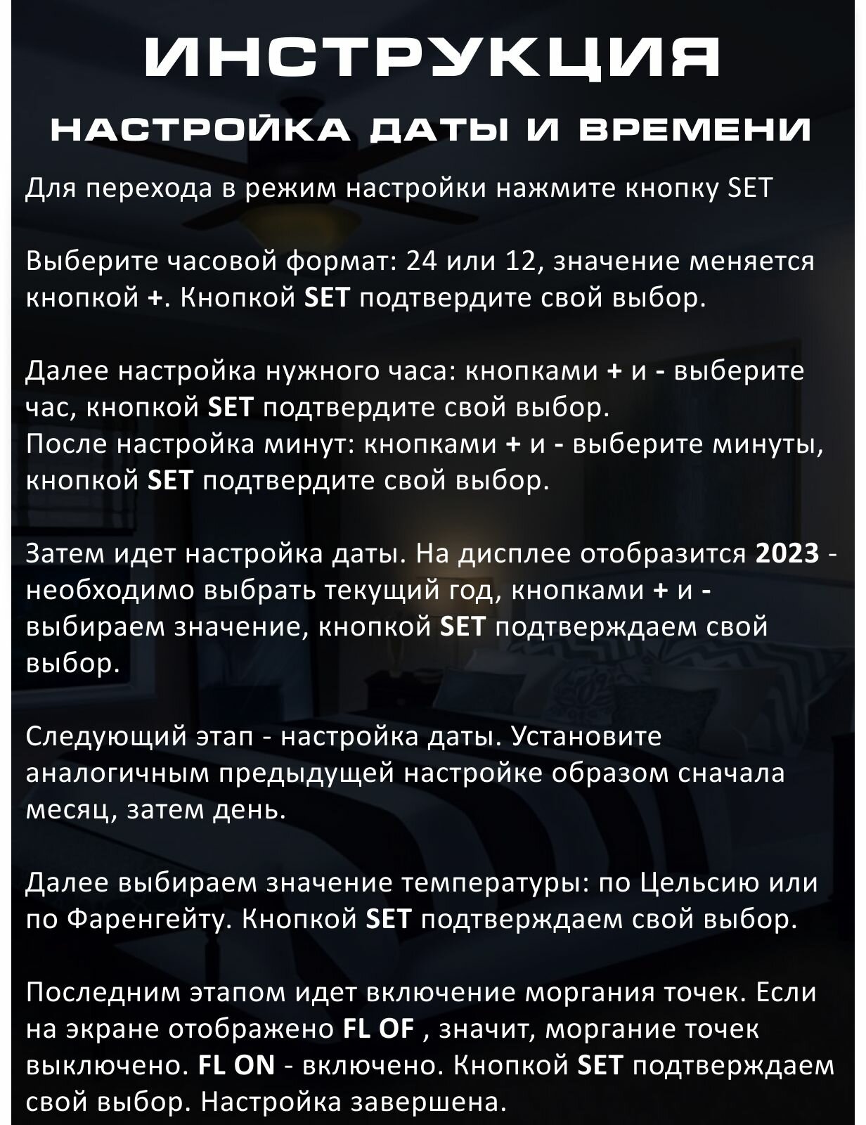 | Комплектация | Часы настенные электронные, пульт управления, кабель питания (3 метра), крепление, линейка для крепления. |