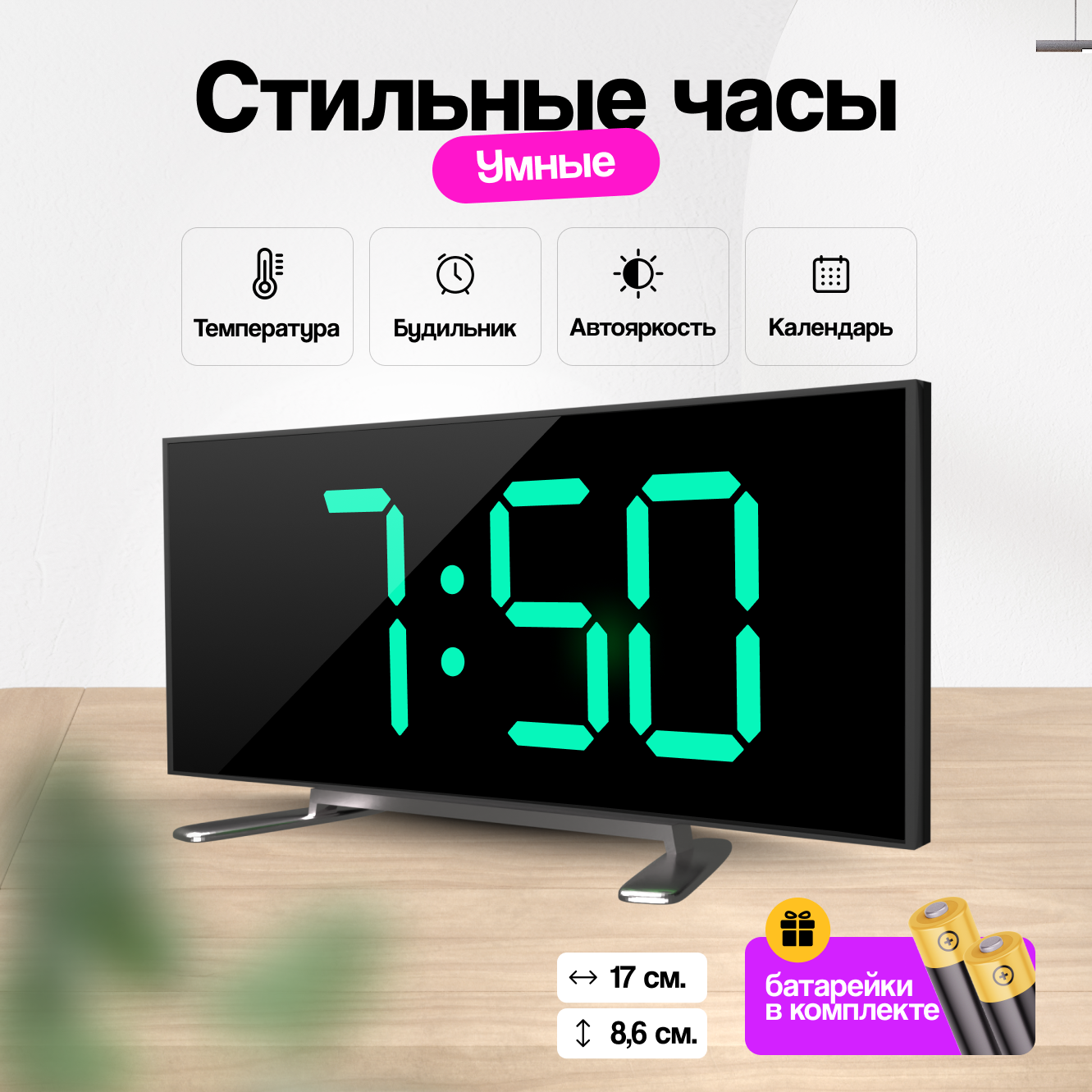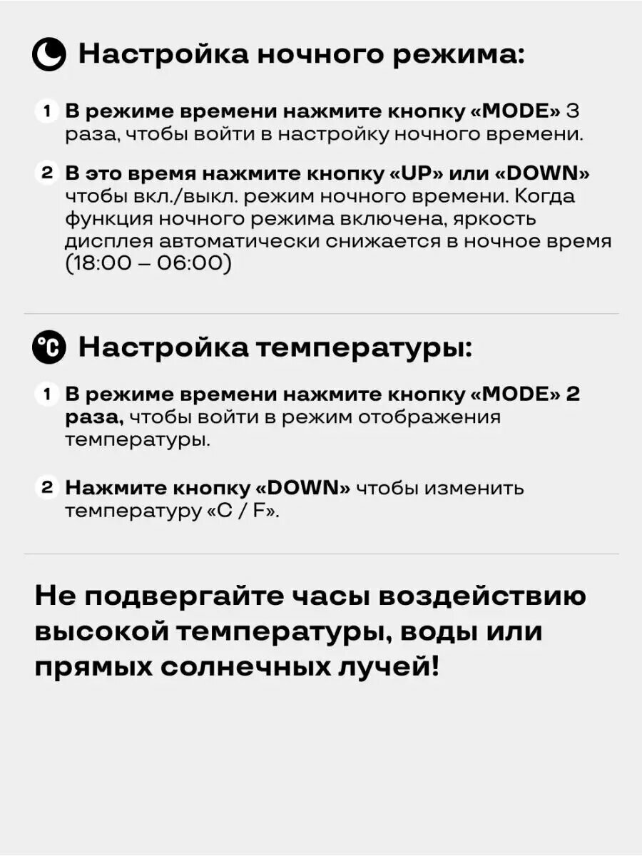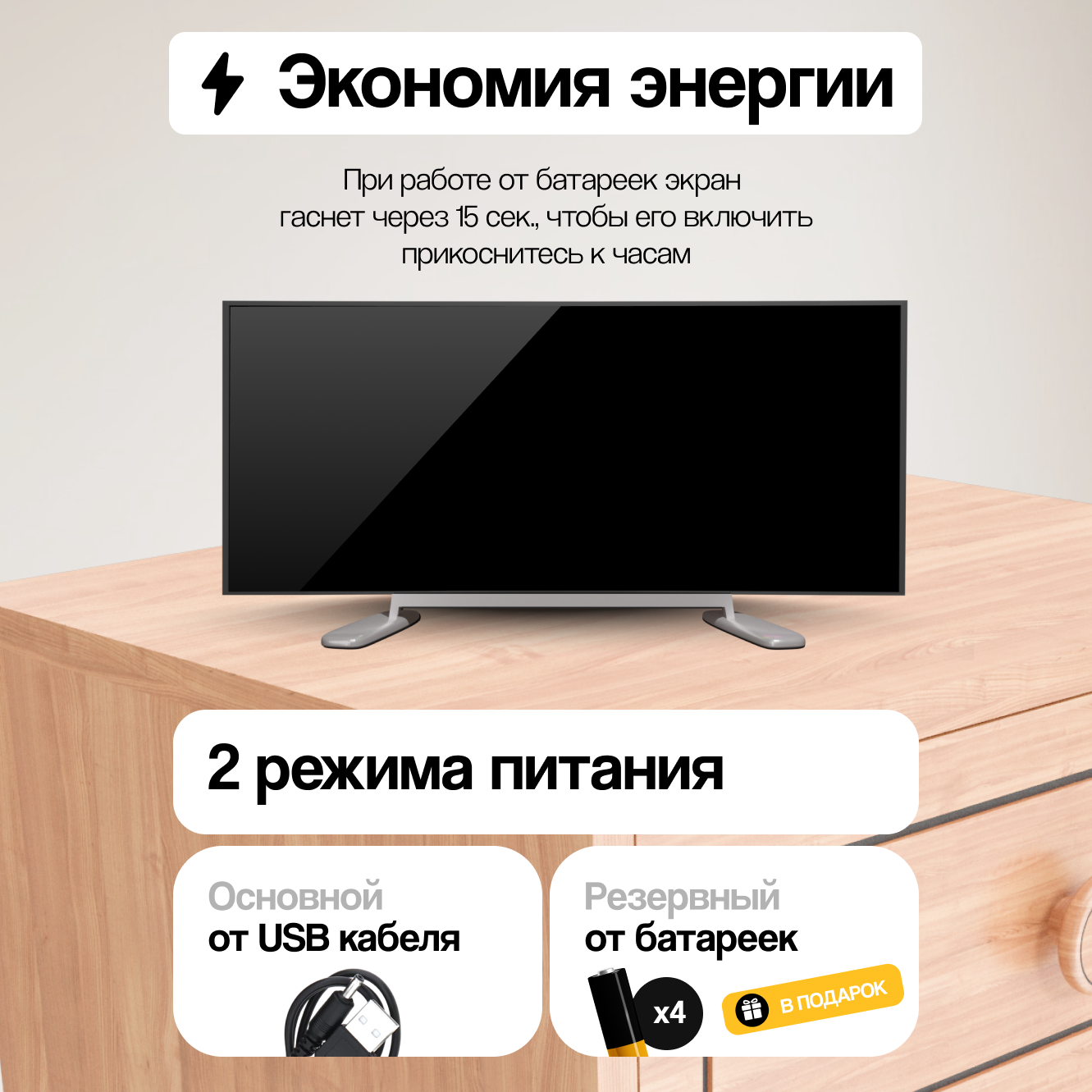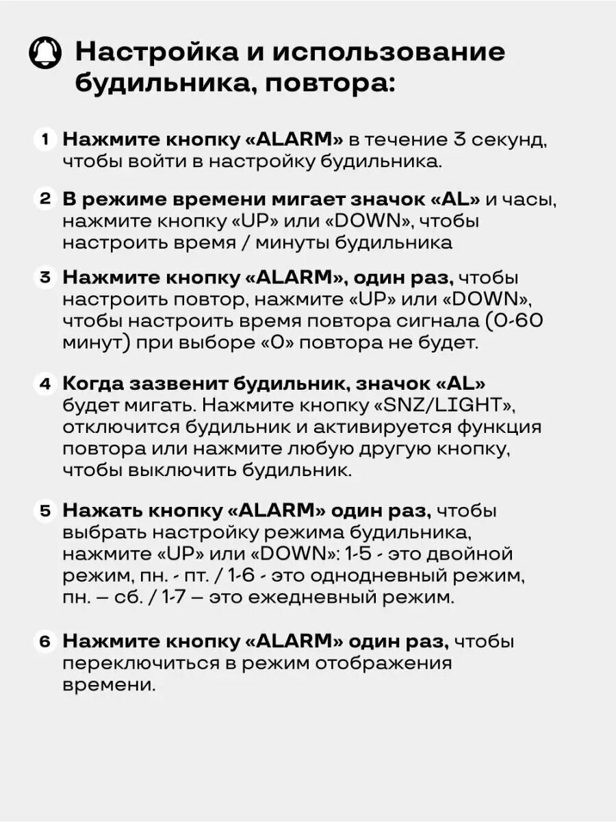 | Особенности | батарейки в комплекте, будильник, подсветка |