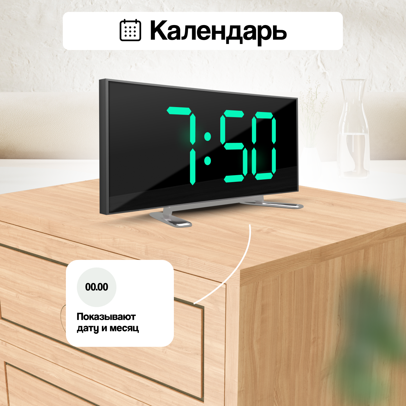 | Дополнительная информация | подсветка, термометр, регулировка яркости, календарь |