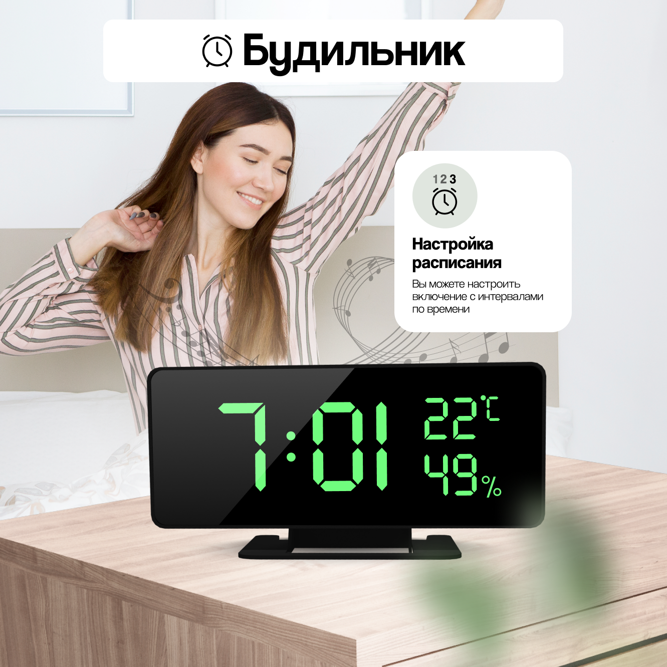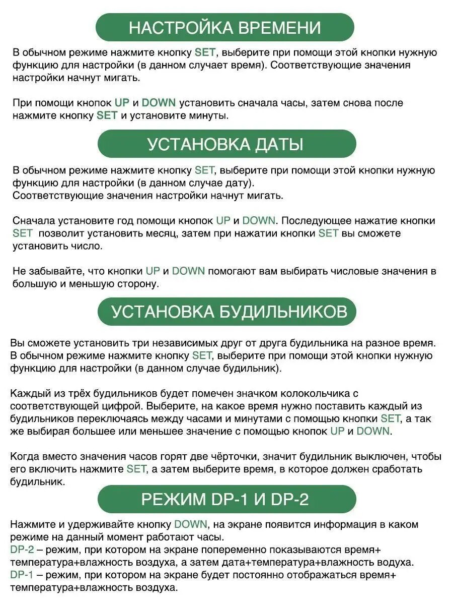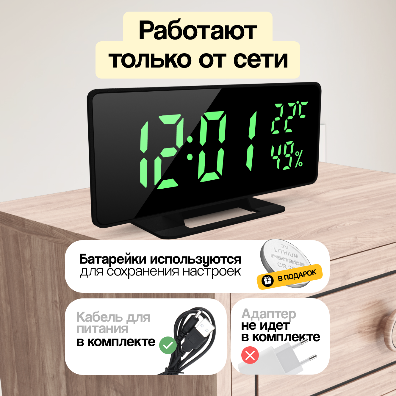 | Особенности | батарейки в комплекте, будильник |